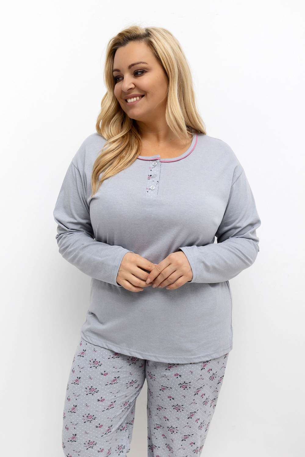 Pidžamas izmēri XL izmērā, mērīti guļus pozā: blūze: platums padusēs – 57 cm, piedurknes garums – 57 cm, kopējais garums – 70 cm, apakšdaļas platums – 55 cm, bikses: jostasvietas platums – 37 cm (guļus), jostasvietas platums – 84 cm (izstiepts), gurnu platums – 67 cm, kopējais garums – 99 cm.