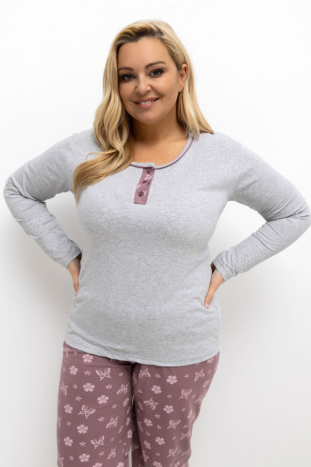 Pidžamas izmēri XL izmērā, mērīti guļus pozā: blūze: platums padusēs – 57 cm, piedurknes garums – 58 cm, kopējais garums – 69 cm, apakšdaļas platums – 56 cm, bikses: jostasvietas platums – 33 cm (guļus), jostasvietas platums – 71 cm (izstiepts), gurnu platums – 61 cm, kopējais garums – 96 cm.