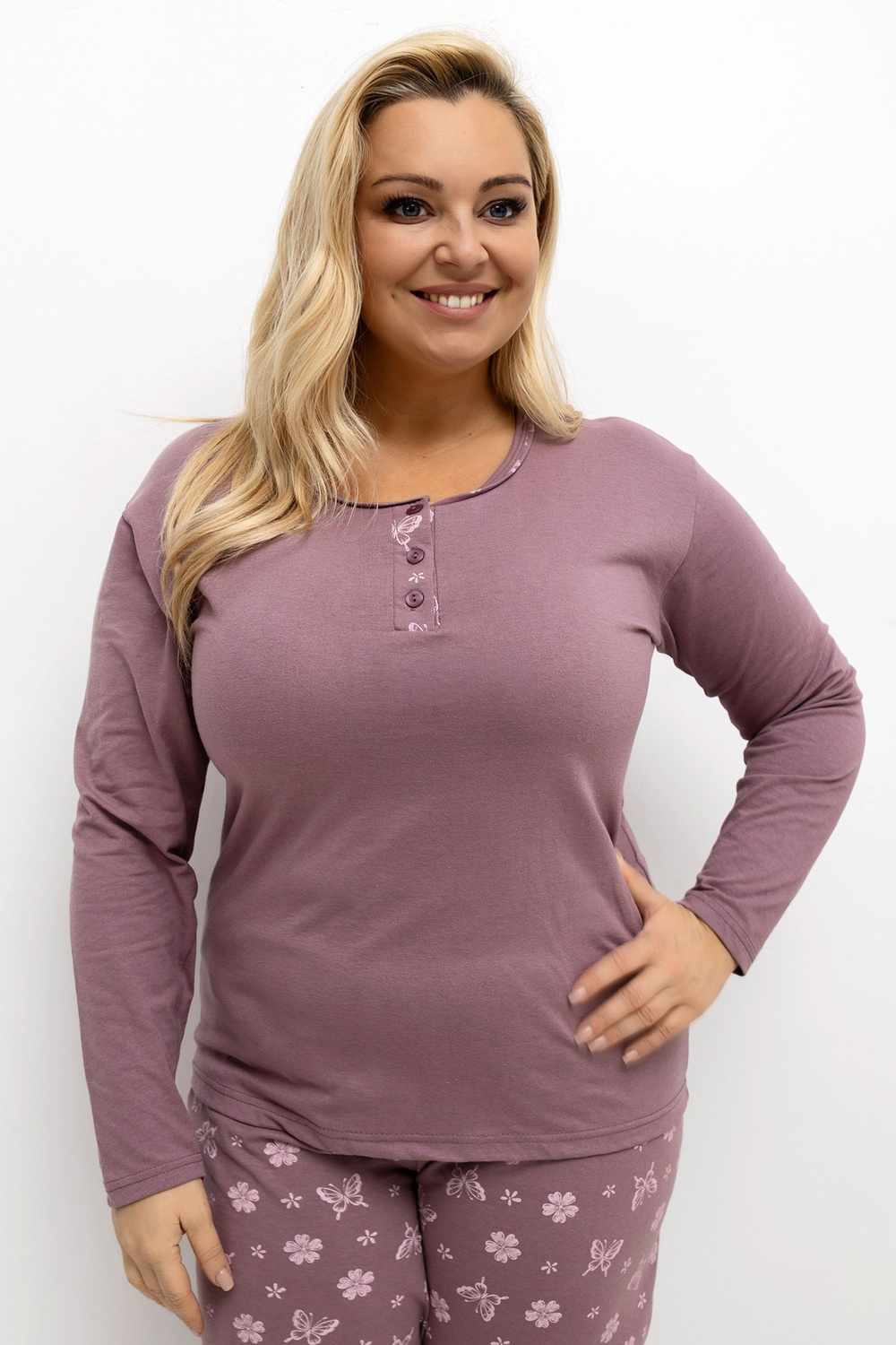 Pidžamas XL izmēra izmēri, mērīti guļus: krekls: platums zem padusēm – 57 cm, piedurknes garums – 58 cm, kopējais garums – 69 cm, apakšdaļas platums – 56 cm; bikses: vidukļa platums – 33 cm (guļus), vidukļa platums – 71 cm (izstiepts), gurnu platums – 61 cm, kopējais garums – 96 cm.