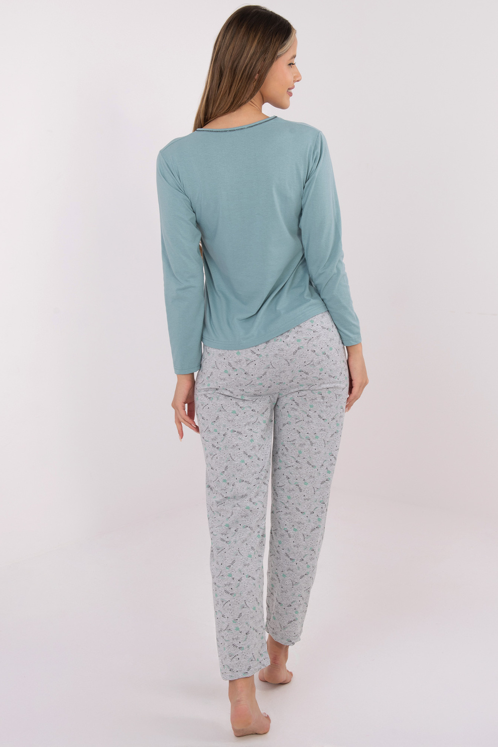 M izmēra pidžamas izmēri, mērīti izgludināti: blūze: platums zem padusēm - 44 cm, piedurknes garums - 60 cm, kopējais garums - 61 cm, apakšmalas platums - 48 cm, bikses: vidukļa platums - 31 cm (izgludināts), vidukļa platums - 54 cm (izstiepts), gurnu platums - 51 cm, kopējais garums - 97 cm.