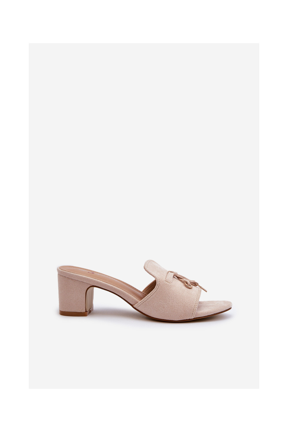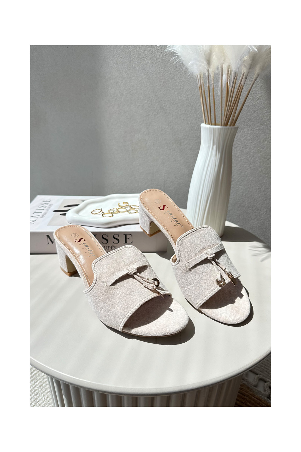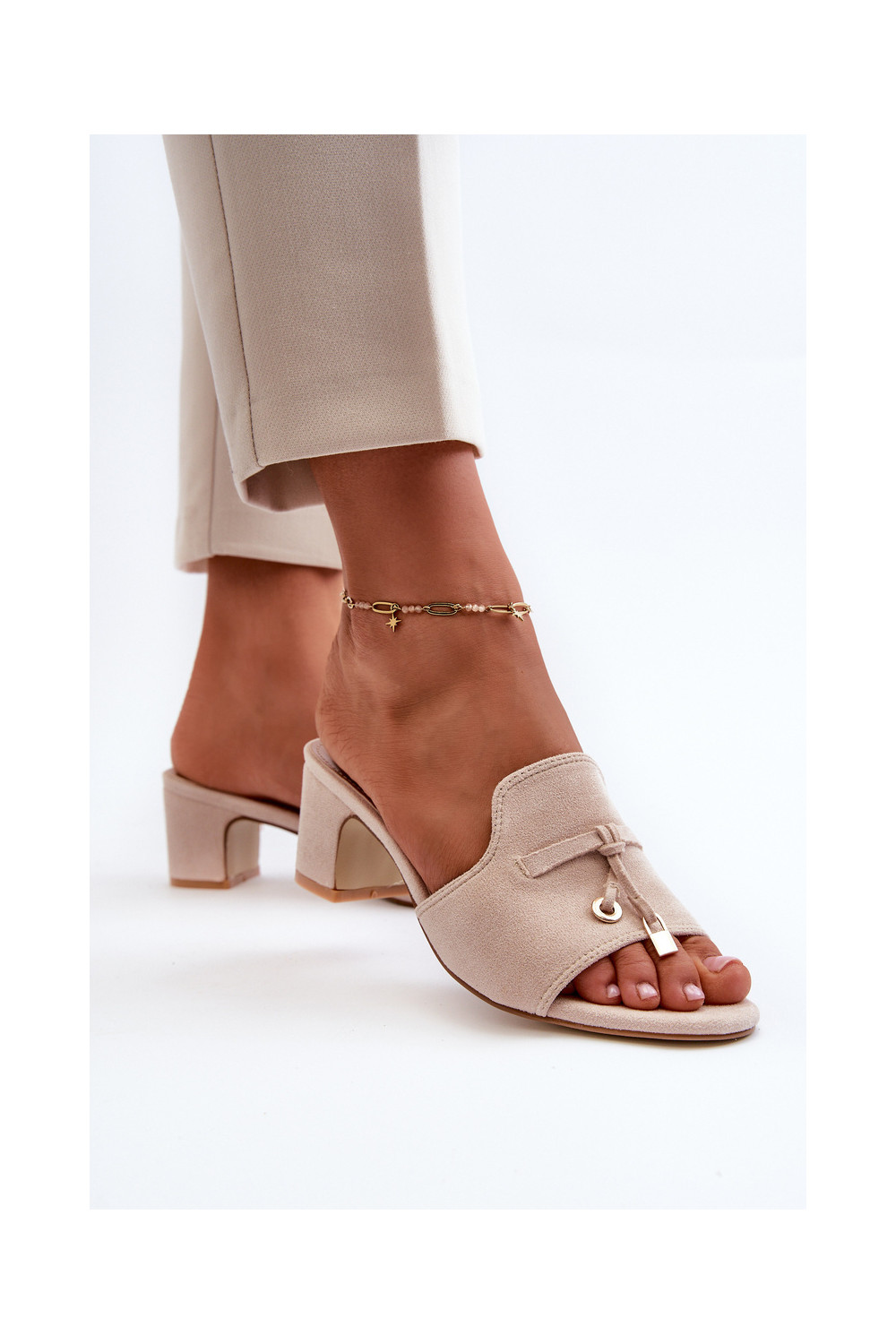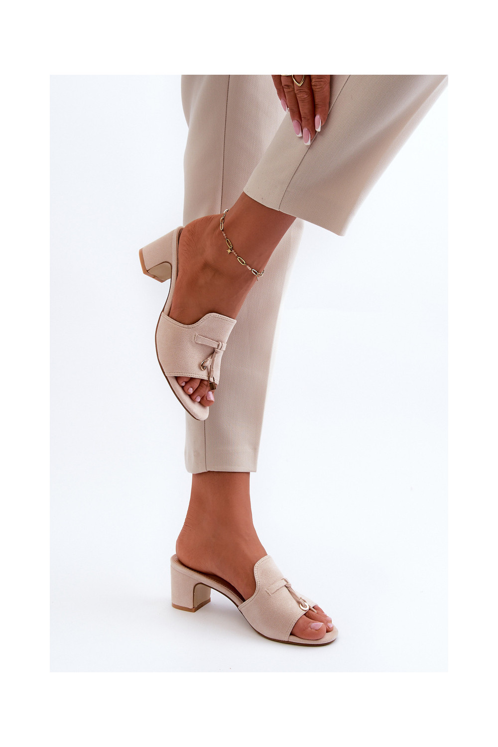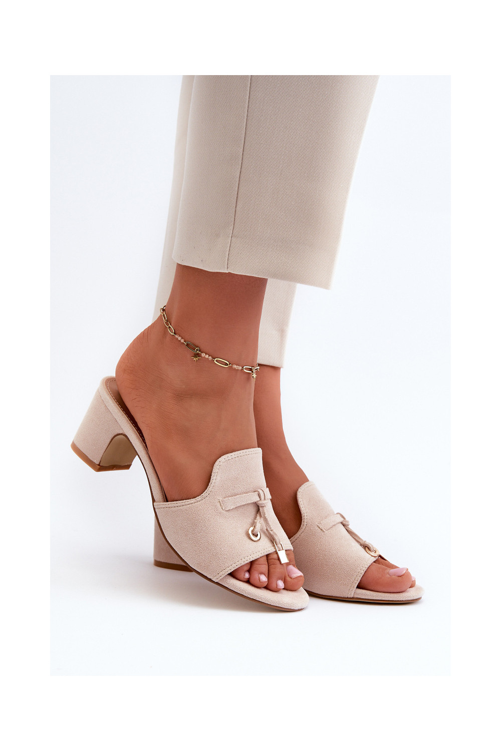 Sieviešu sandelītes no mākslīgās zamšā ar papēžiem smilšu krāsā Jemenna