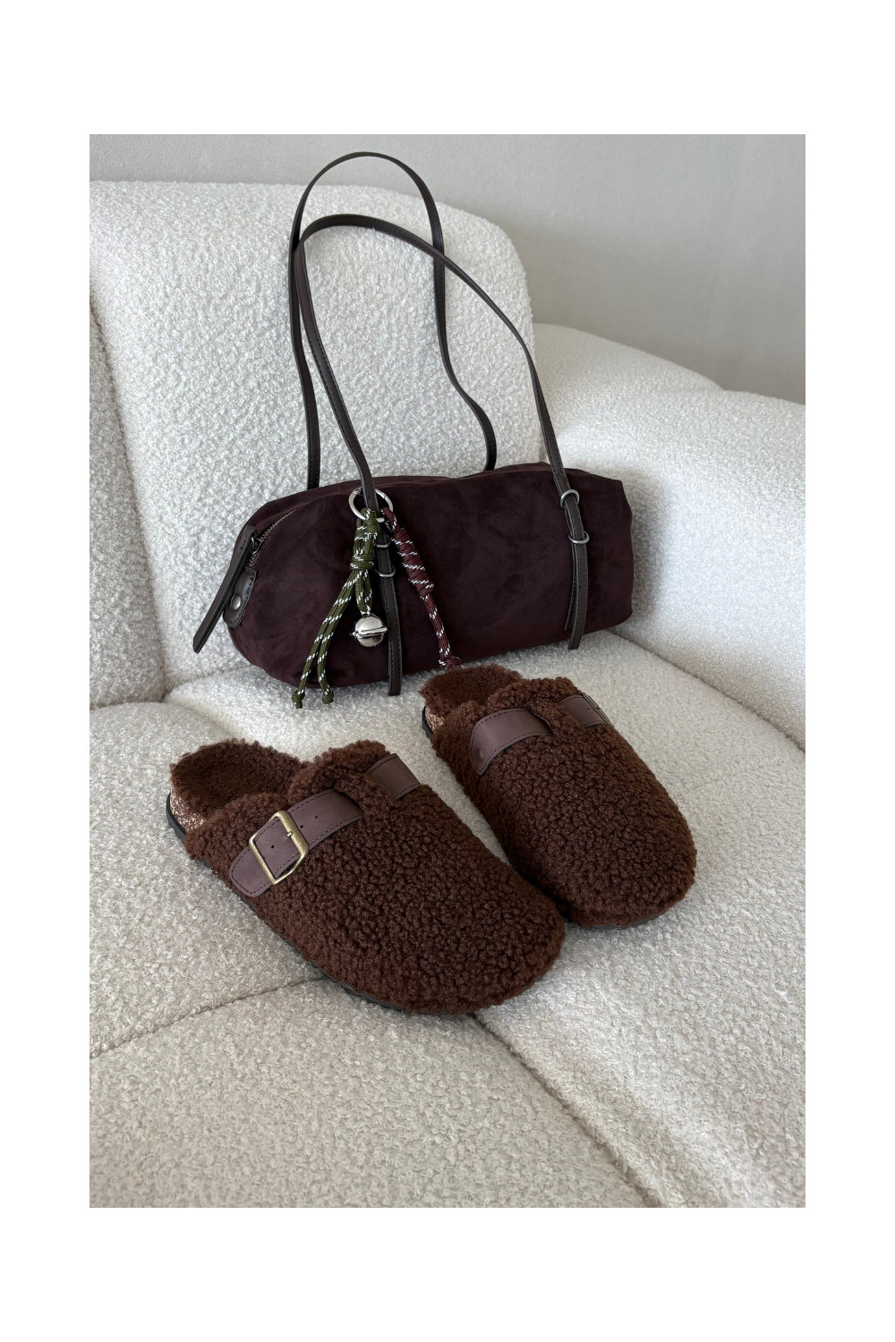 Mājsaimniecības čības ar aitu vilnas tipa apdari, brūnā krāsā Lorivine
