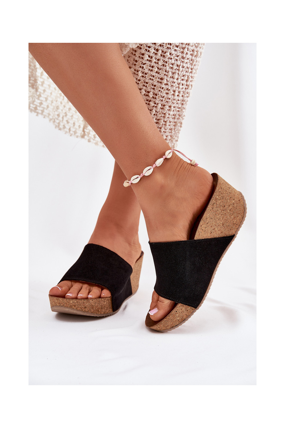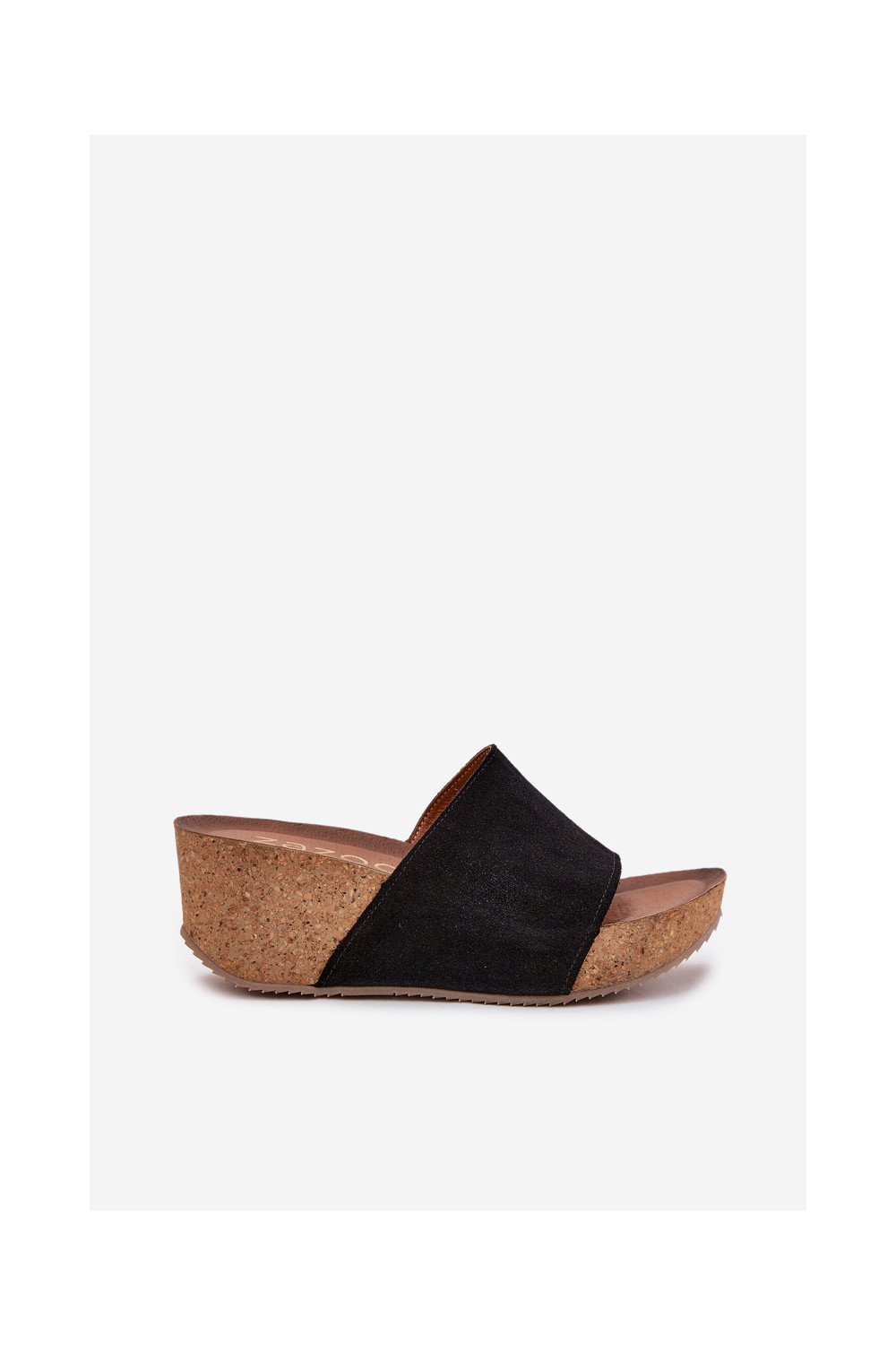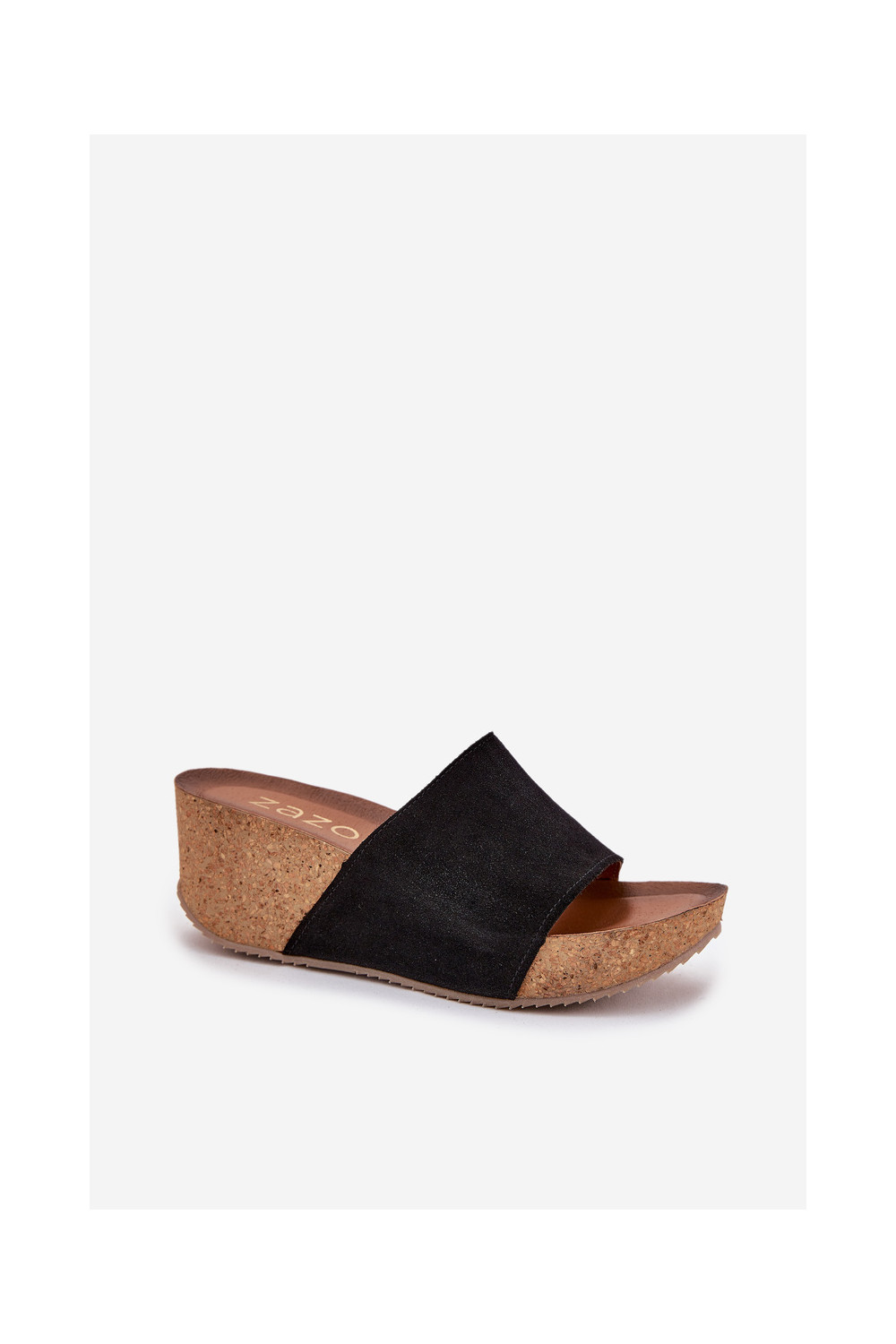 Zazoo 40311 sieviešu zamšādas čības uz korķa papēža melnā krāsā