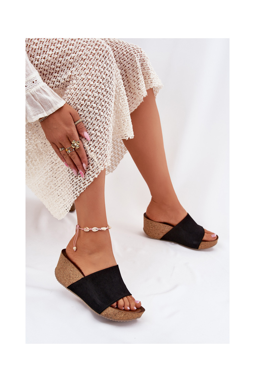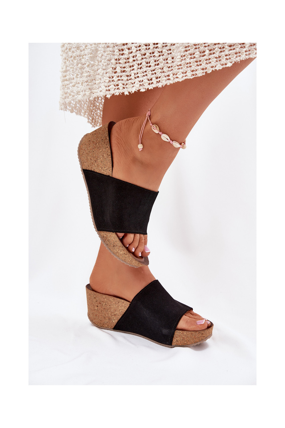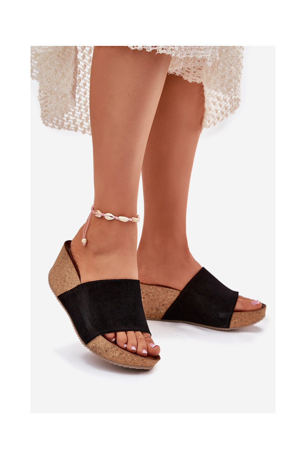 Zazoo 40311 sieviešu zamšādas čības uz korķa papēža melnā krāsā