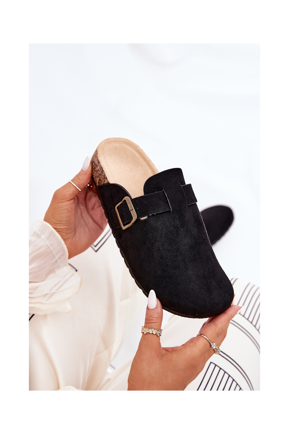 Sieviešu čības ar platformu un sprādzēm melnā krāsā Selio
