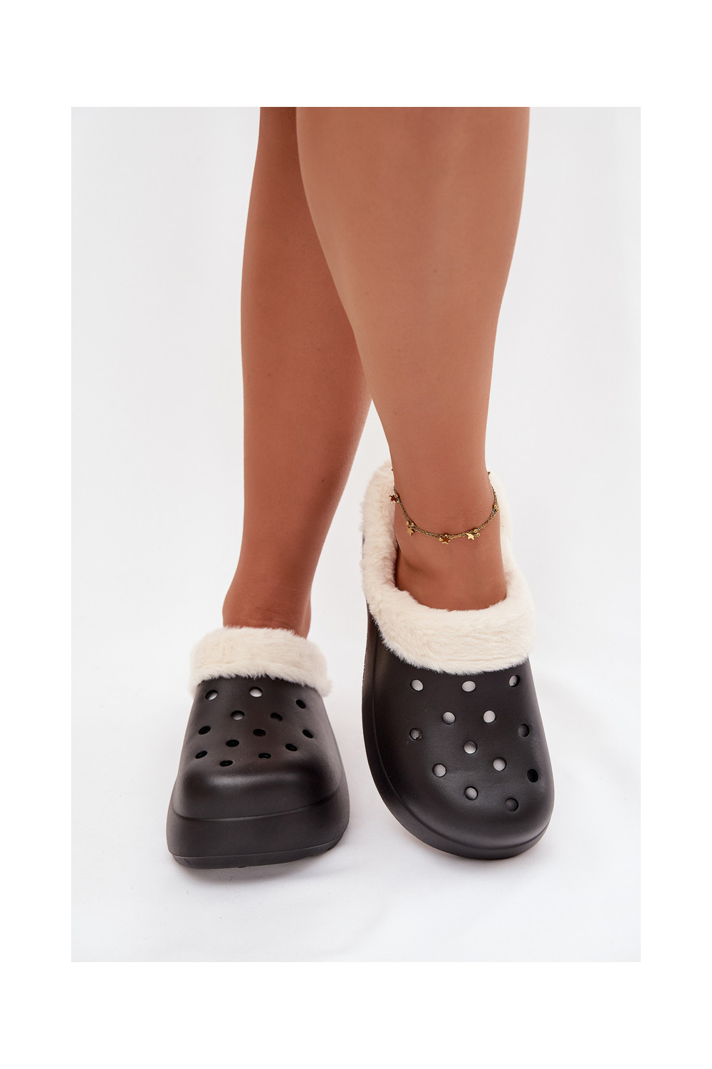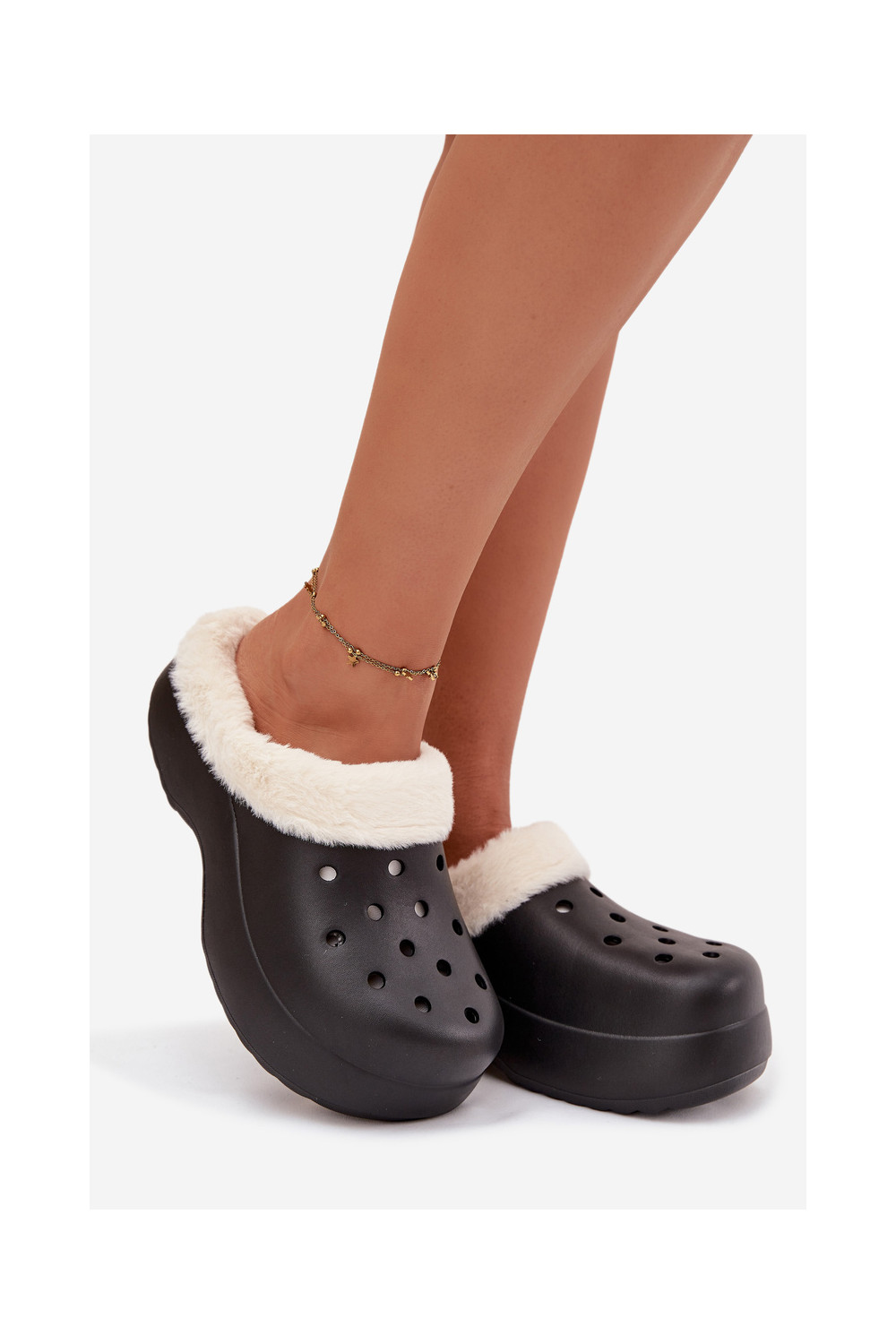 Melnas Palvine vieglas sieviešu čības, siltinātas ar kažokādu iekšpusē