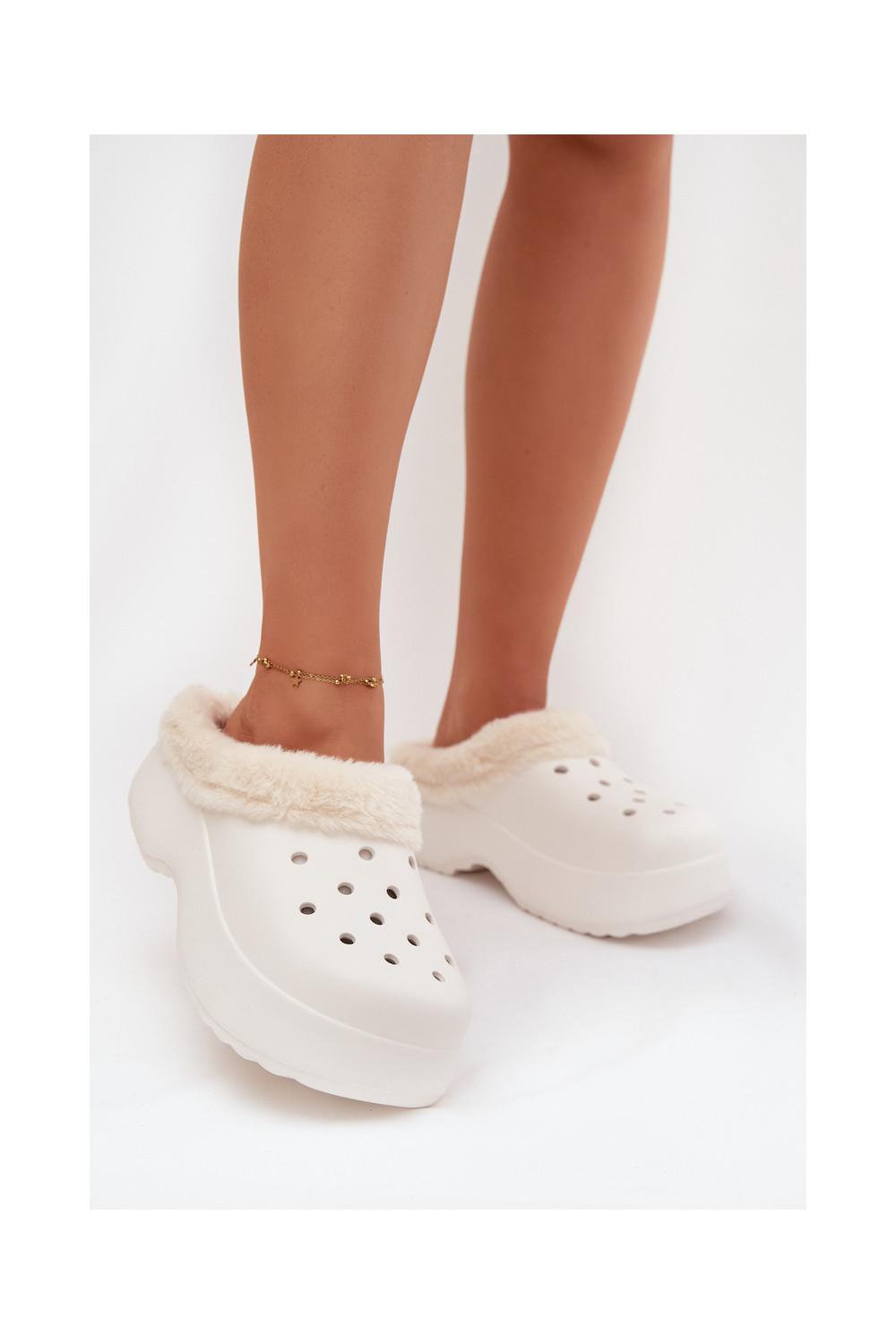 Baltas Palvine vieglas sieviešu čības, siltinātas ar kažokādu iekšpusē