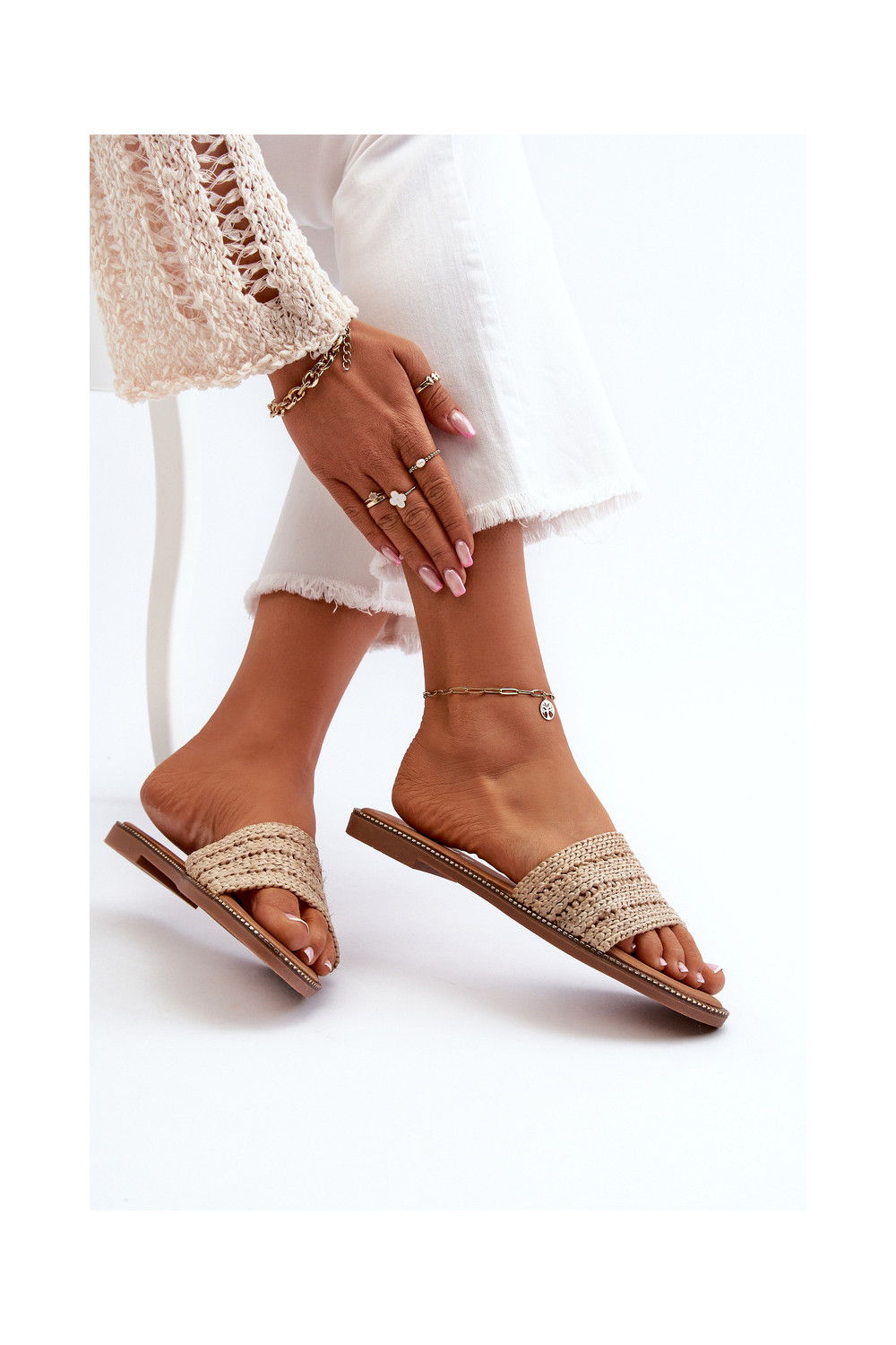 Sieviešu čības ar pūci un platām papēžiem smilšu krāsā Radians
