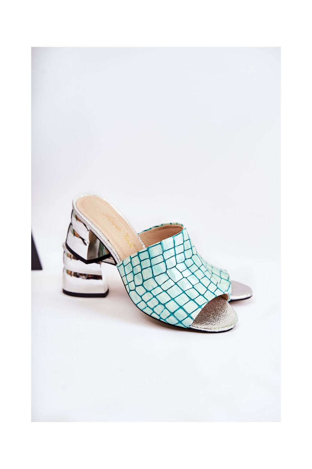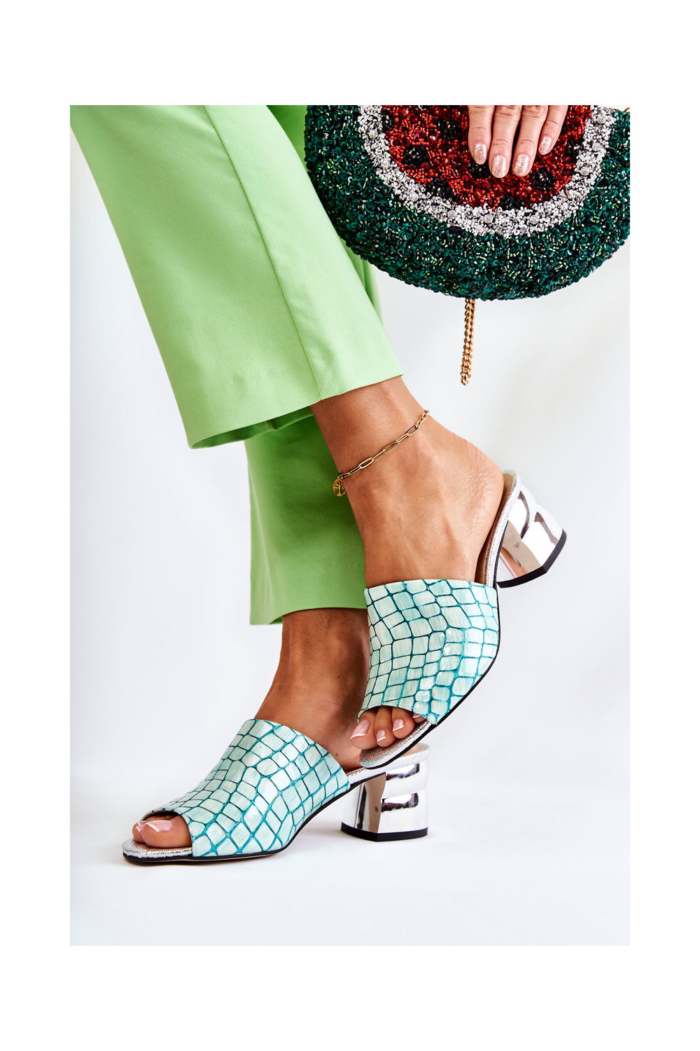 Gaiši zaļas sieviešu ādas čības ar krokodila rakstu un papēžiem "Perry"