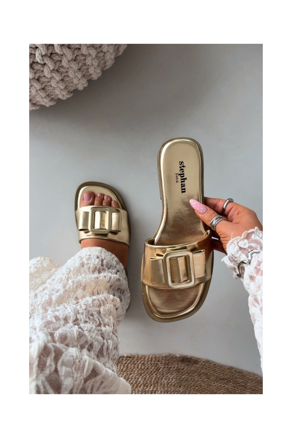 sieviešu čības ar platiem papēžiem ar sprādzēm Zelta krāsas Melivra