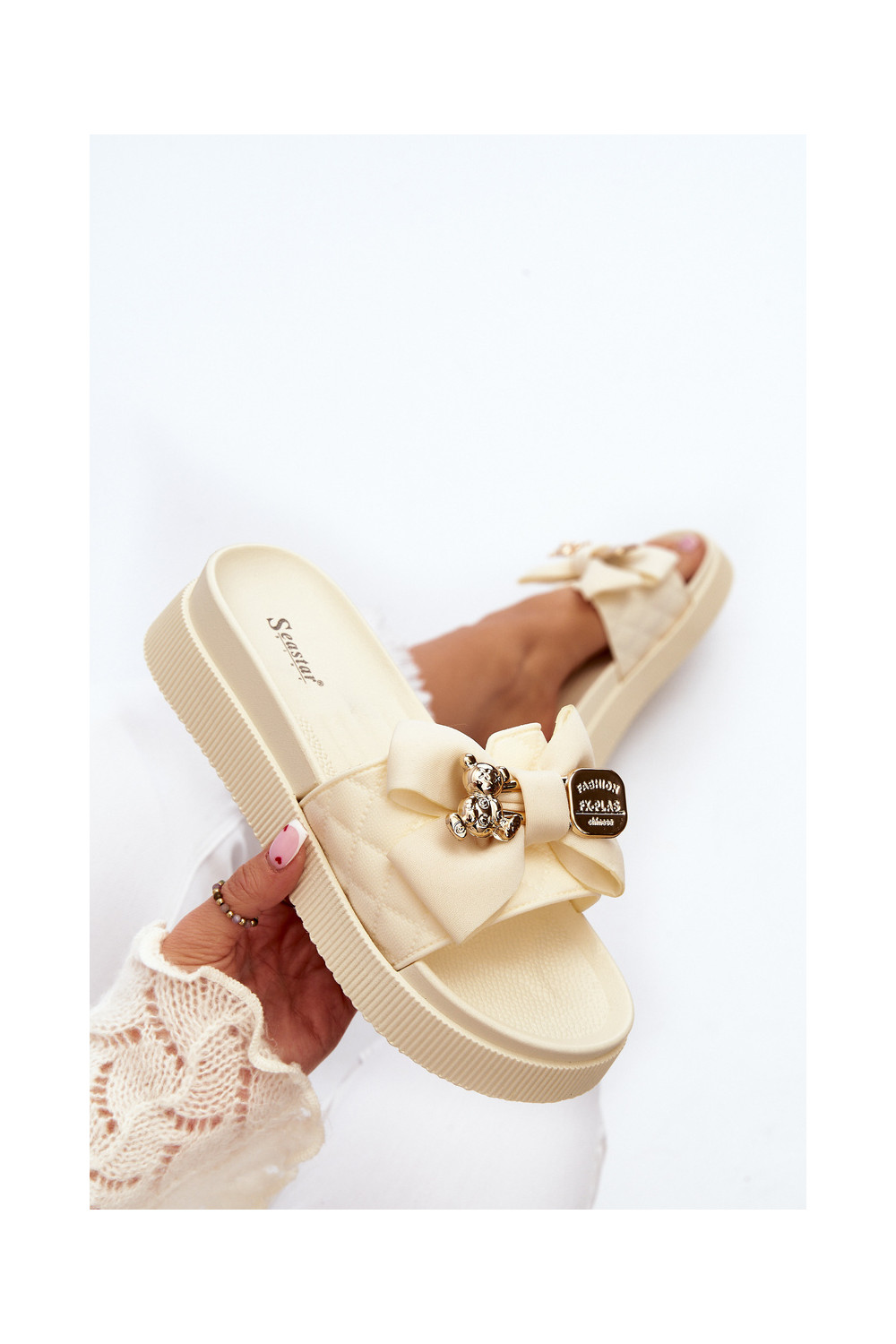 Sieviešu Čības ar bantītēm i Rotaļu lācīšim smilšu krāsas Katterina