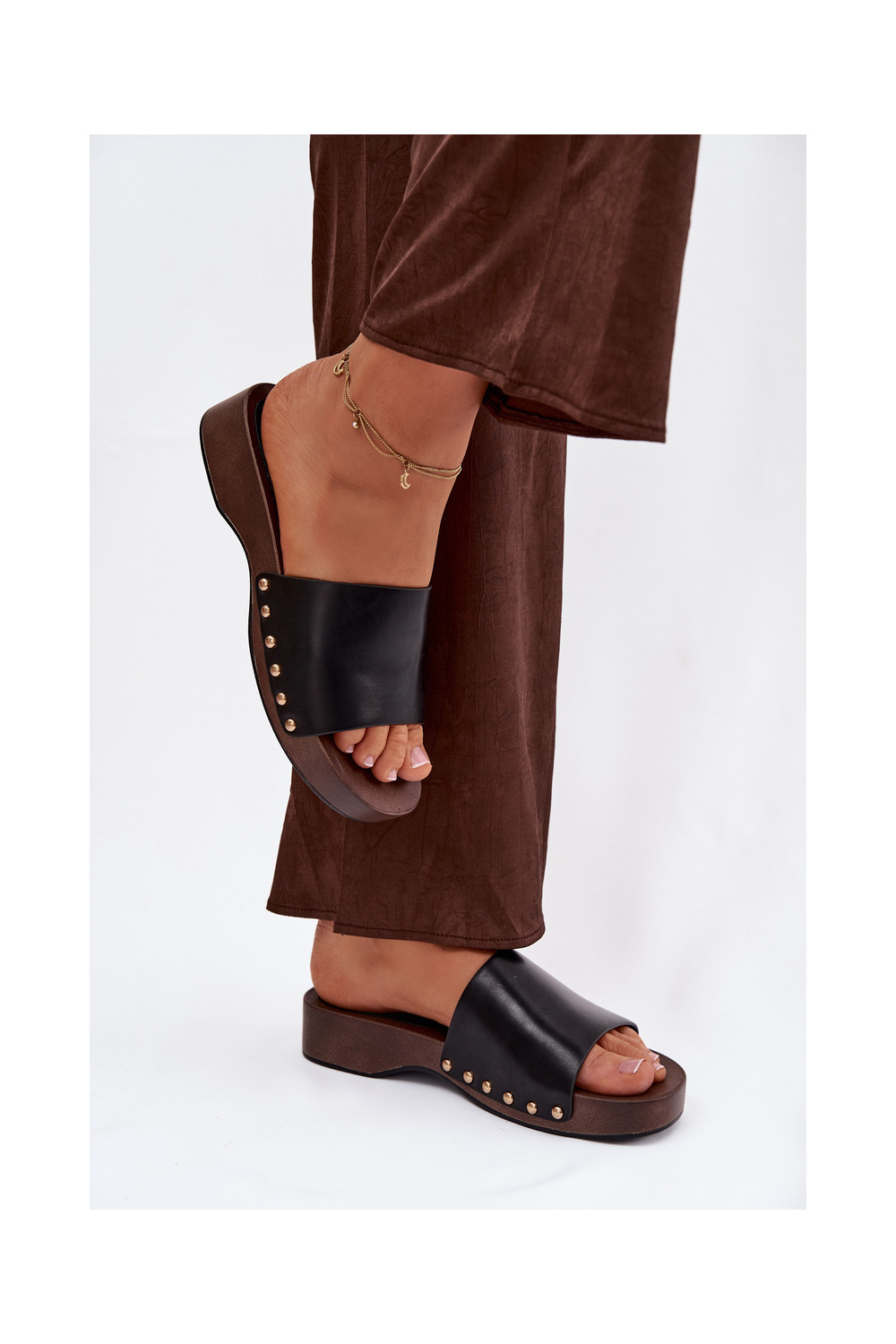 Sieviešu čības ar zelta krāsas dzīsliņām melnā krāsā Terissa