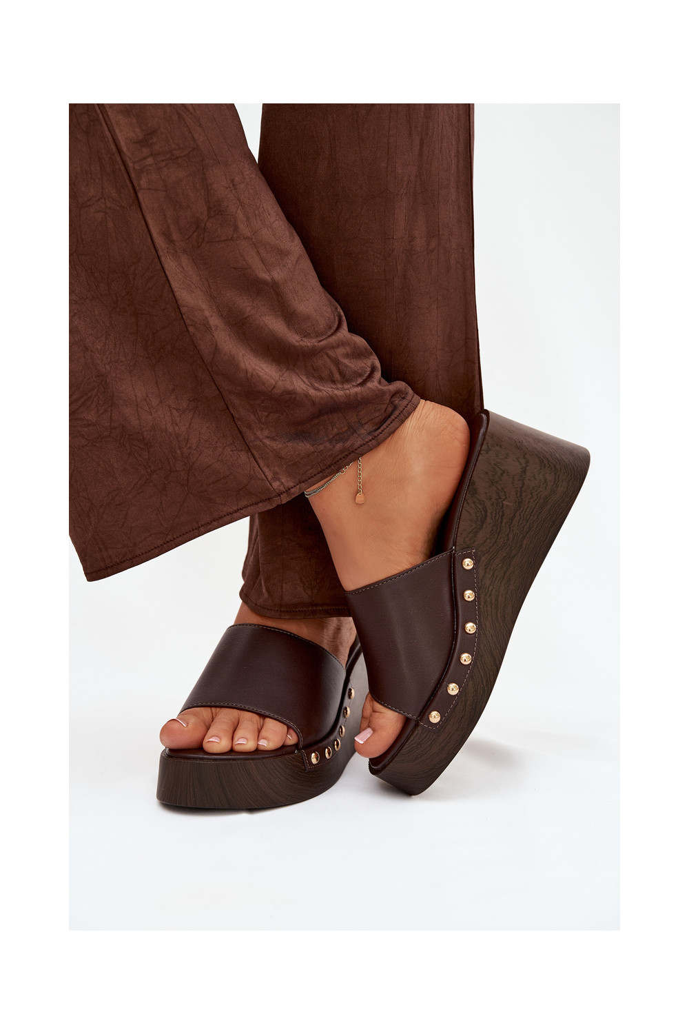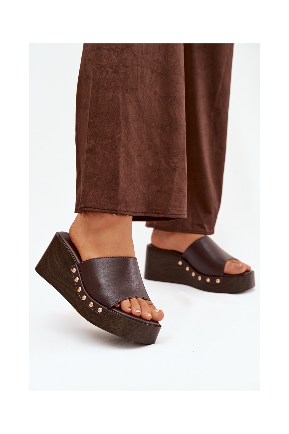 Sieviešu čības uz platformas ar zelta krāsas dzīsliņām šokolādes krāsā Arionne