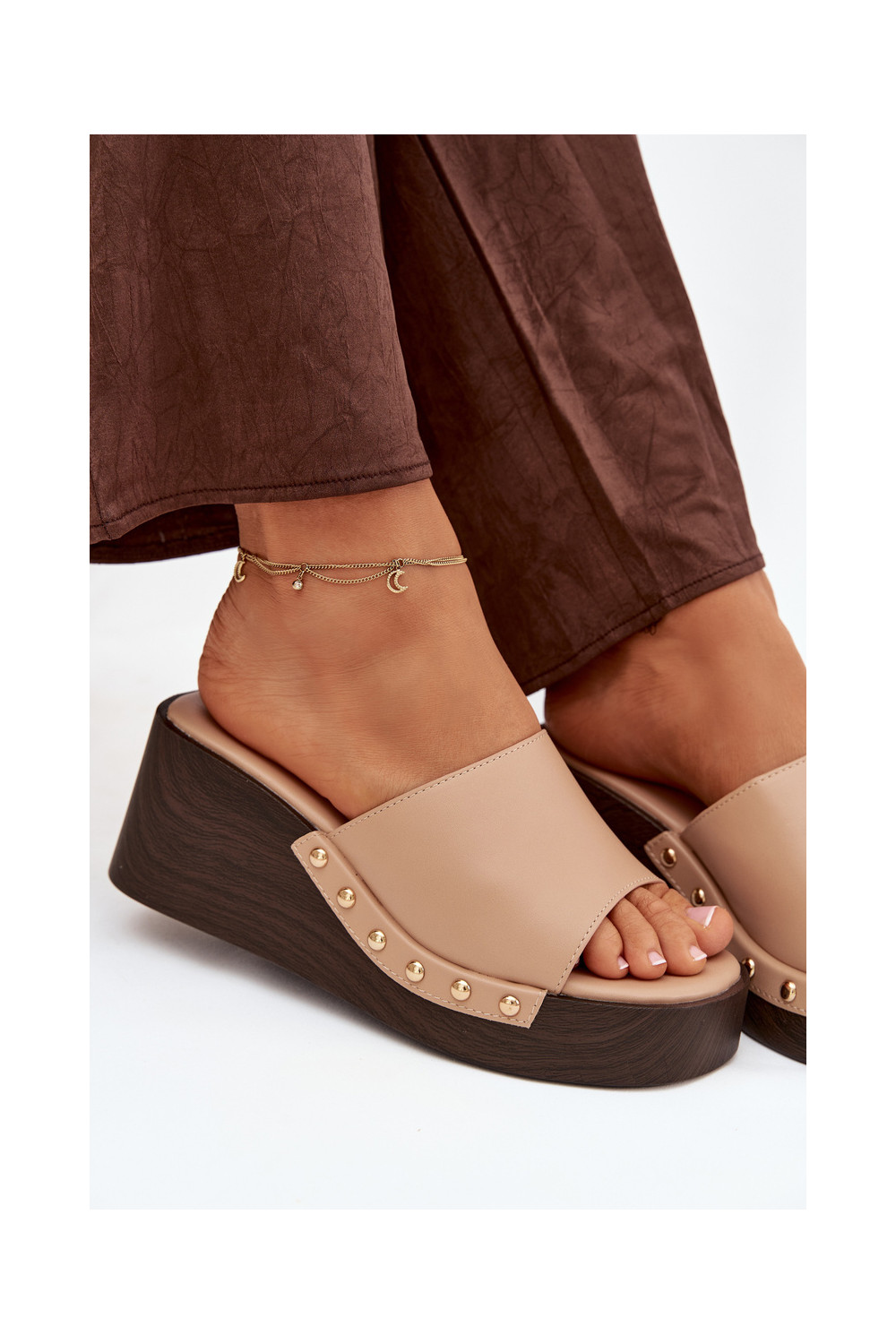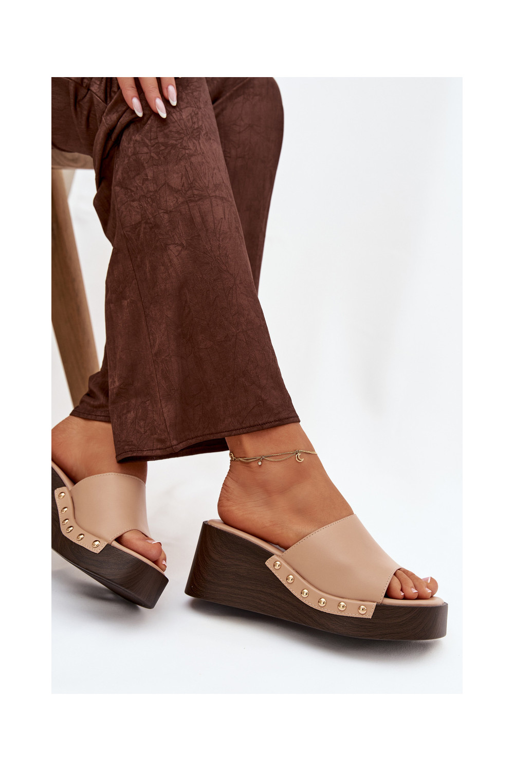 Sieviešu čības uz platformas ar zelta krāsas dzīsliņām smilšu krāsā Arionne