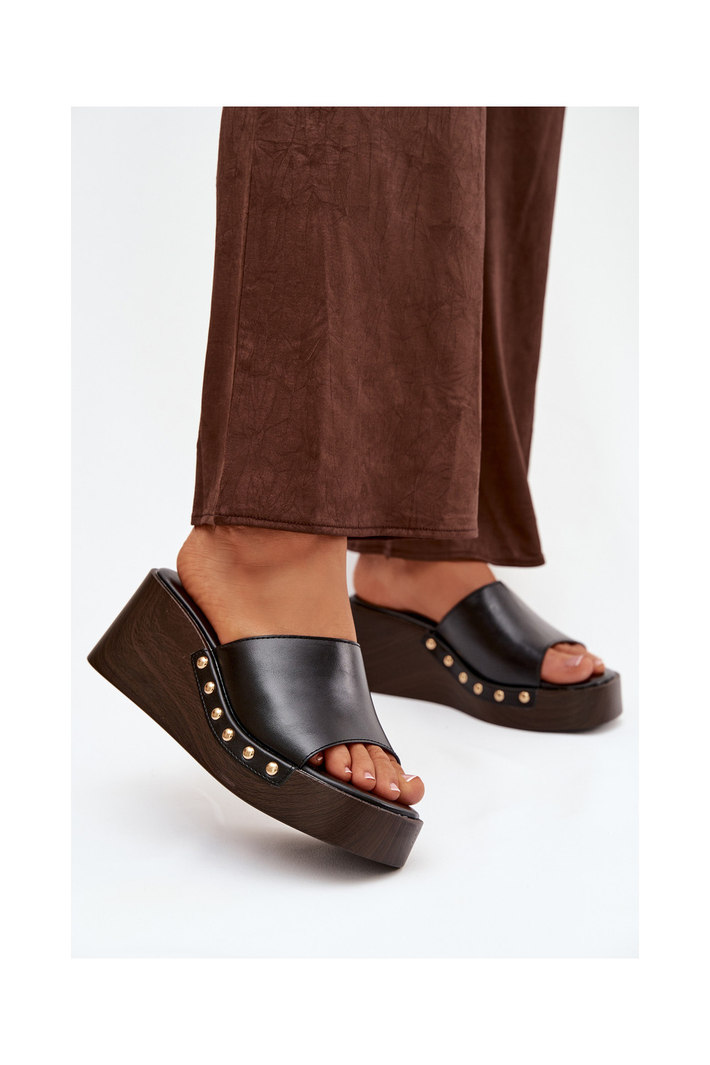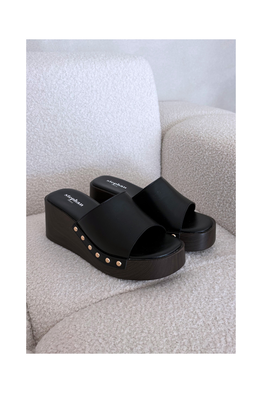 Sieviešu čības uz platformas ar zelta krāsas dzīsliņām melnā krāsā Arionne