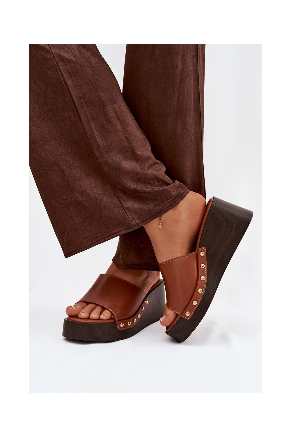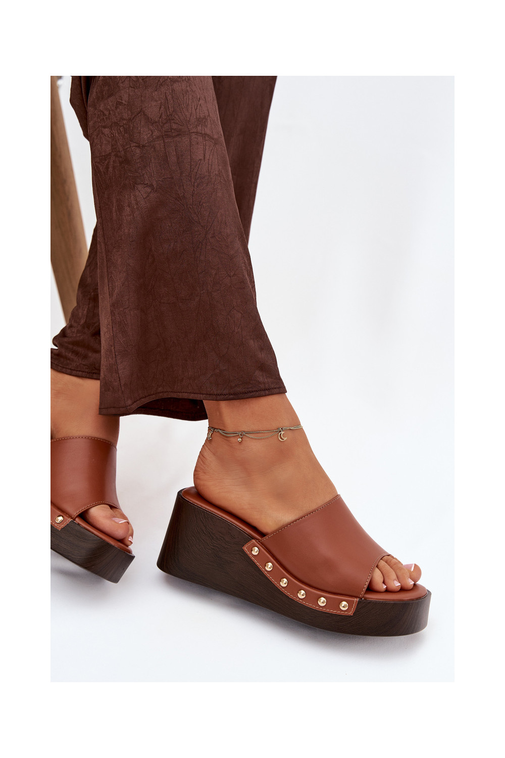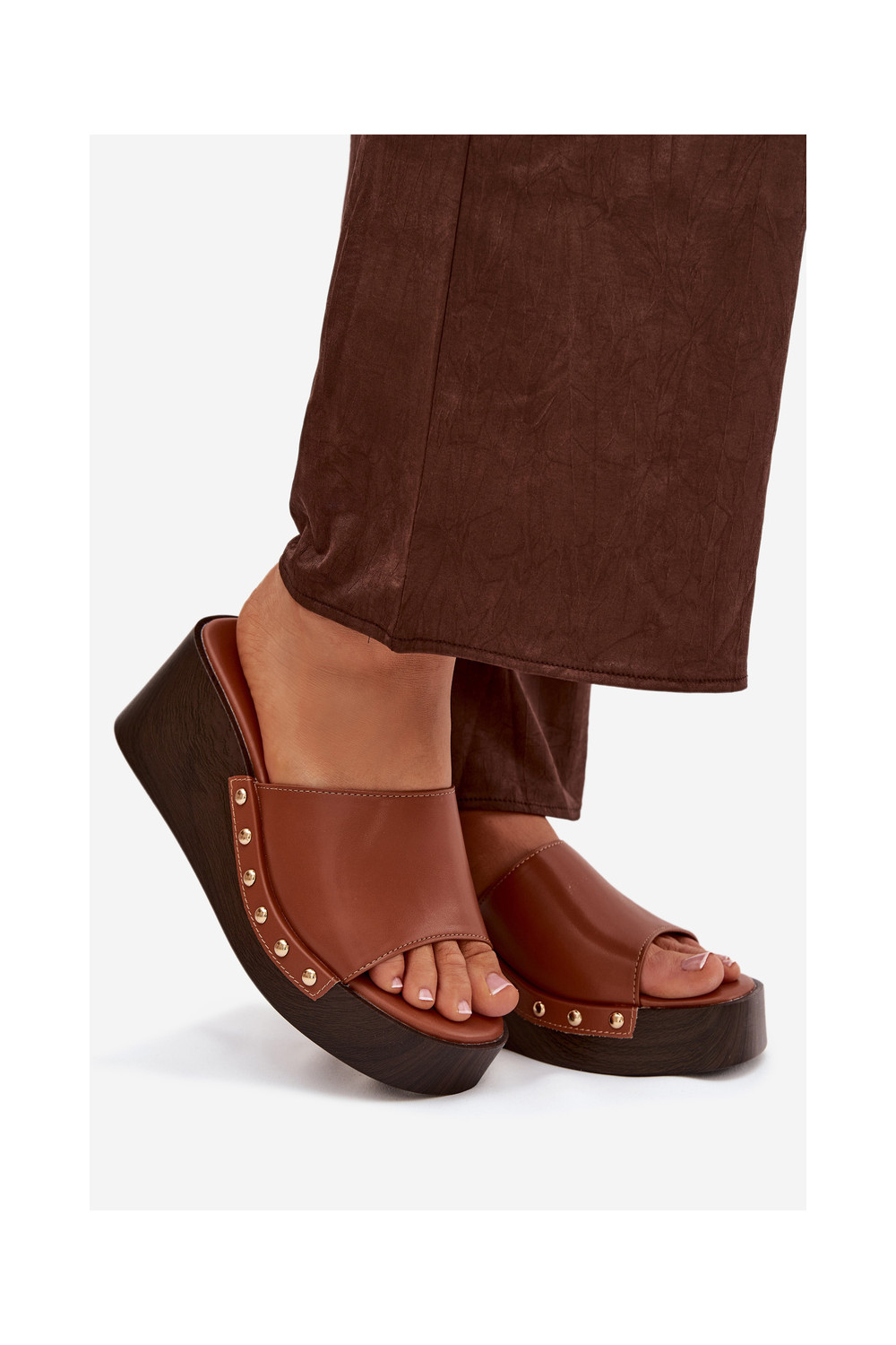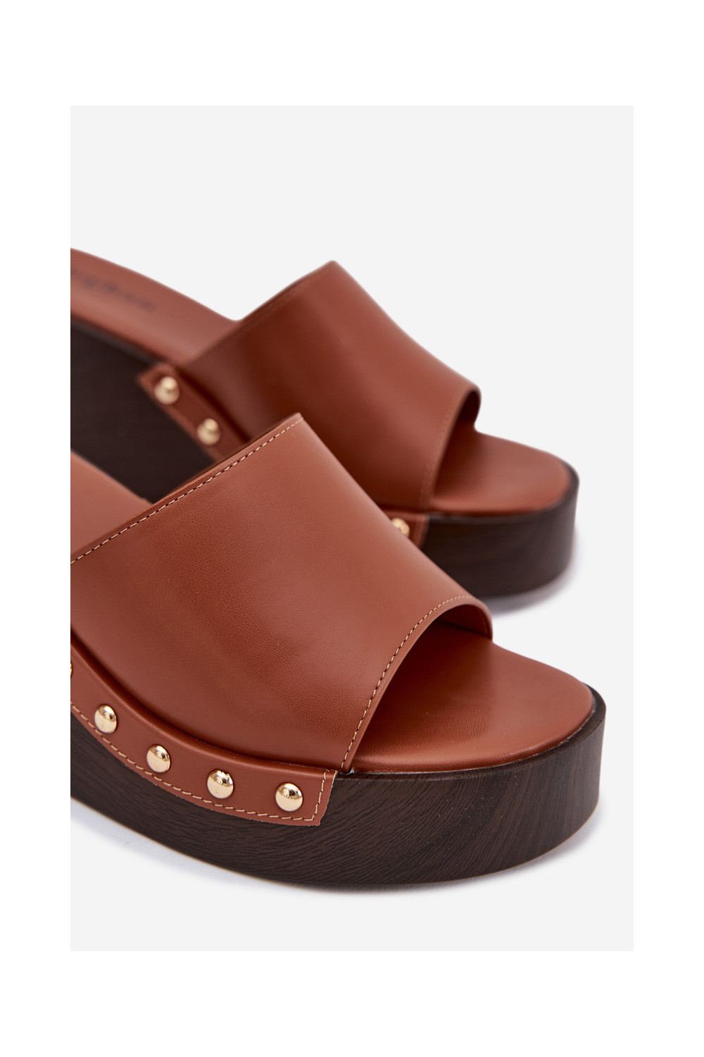 Sieviešu zelta krāsas platformas čības Arionne, brūnas
