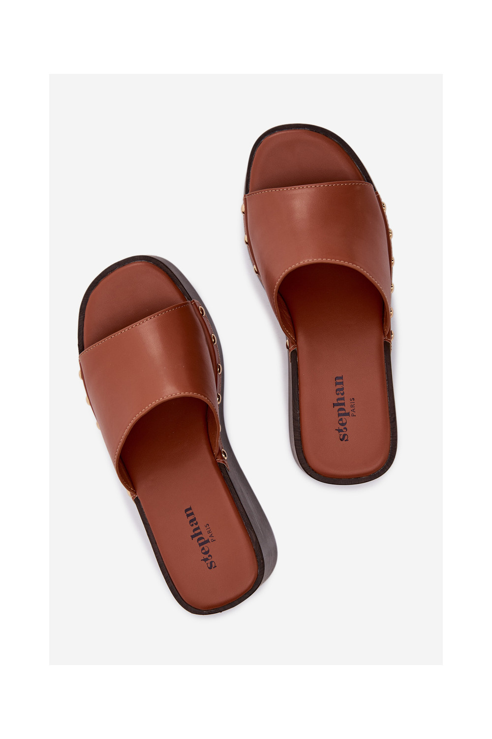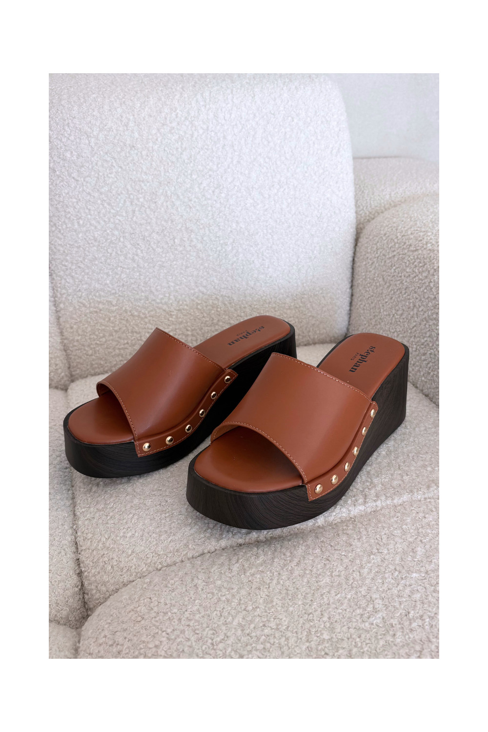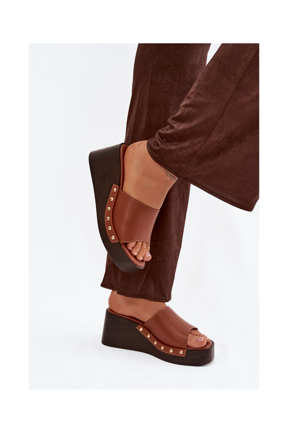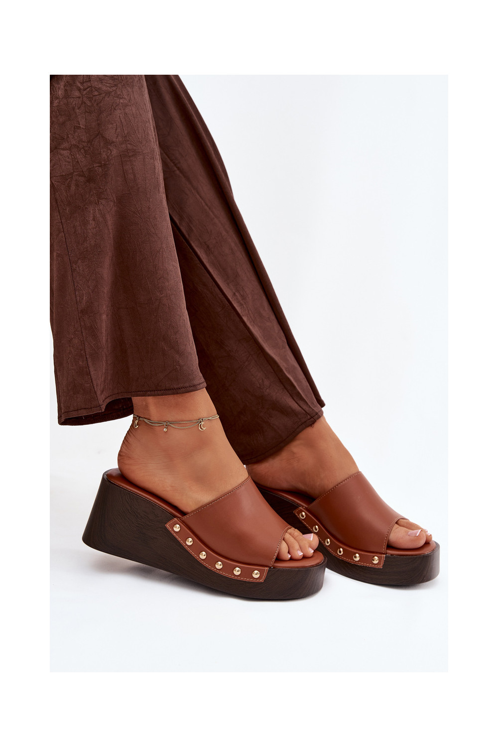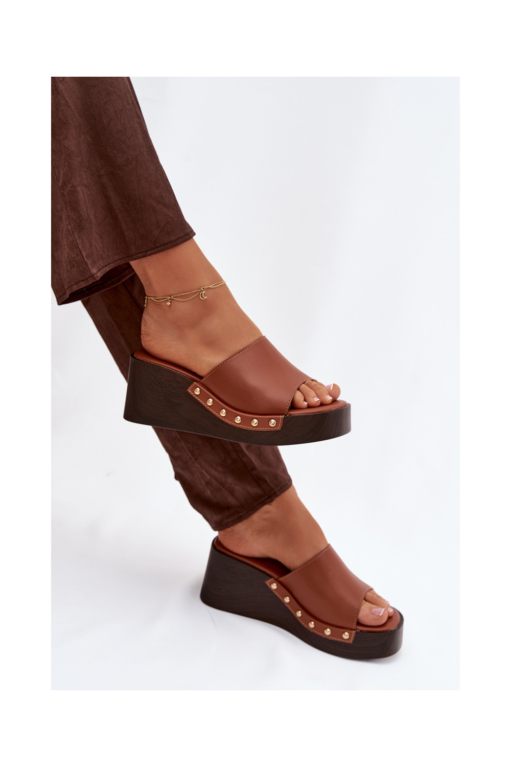 Sieviešu zelta krāsas platformas čības Arionne, brūnas