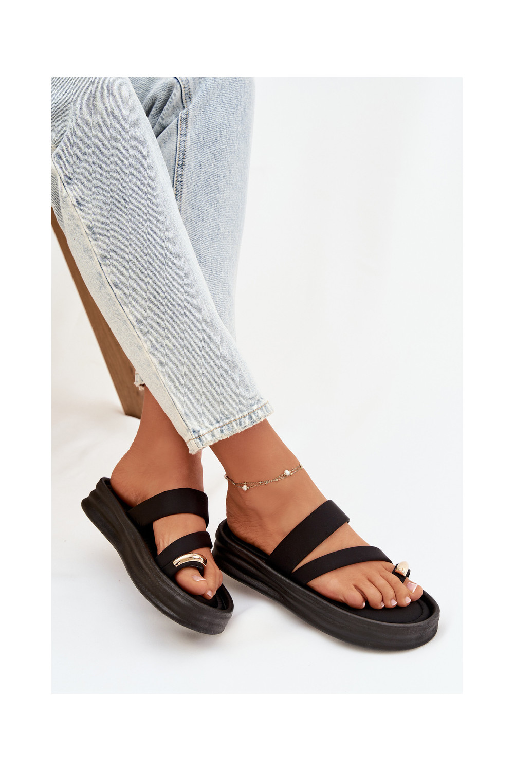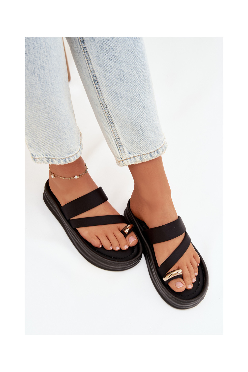 Sieviešu melnas čības ar siksniņām un zelta krāsas detaļām Farielle