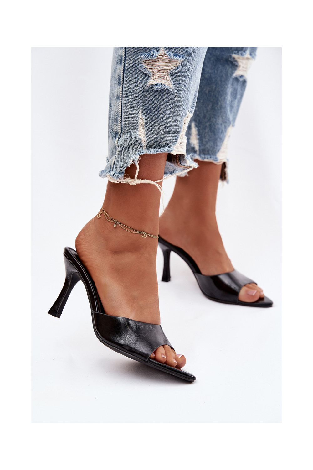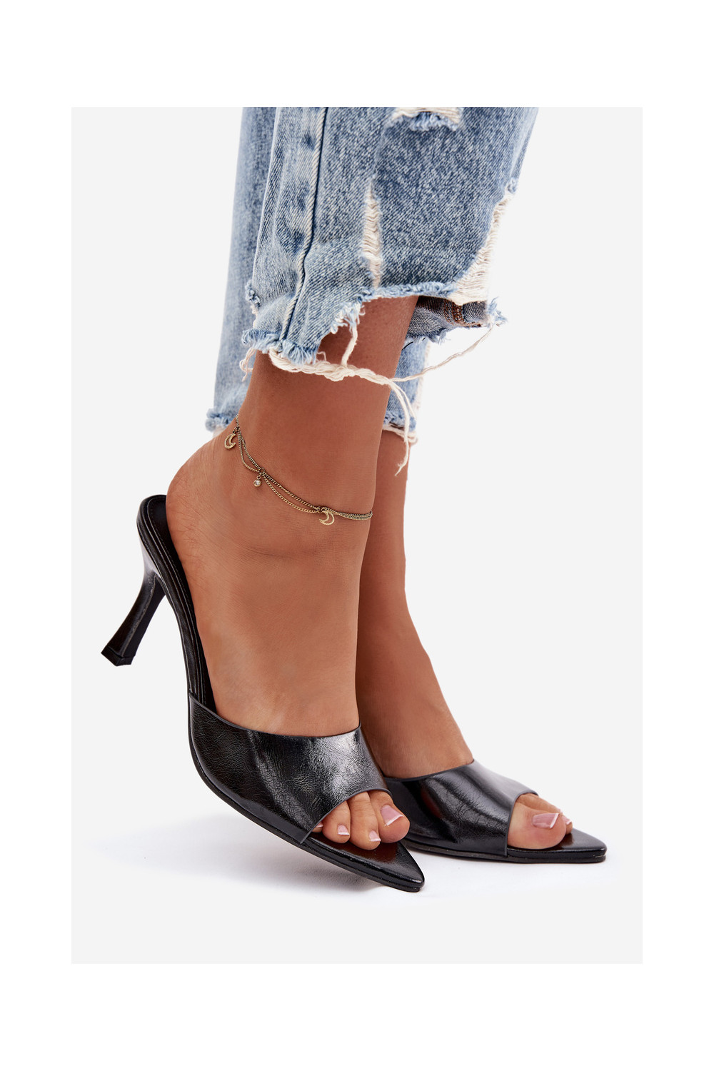 Sieviešu melnas lakuotas čības ar papēžiem Lirissa
