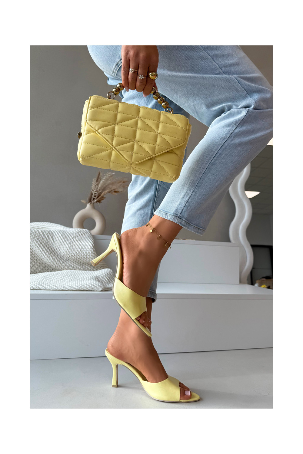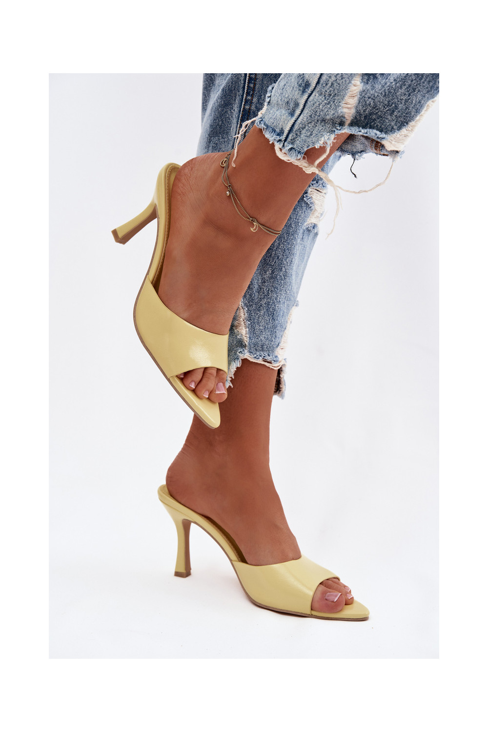 Sieviešu dzeltenas lakuotas čības ar papēžiem Lirissa