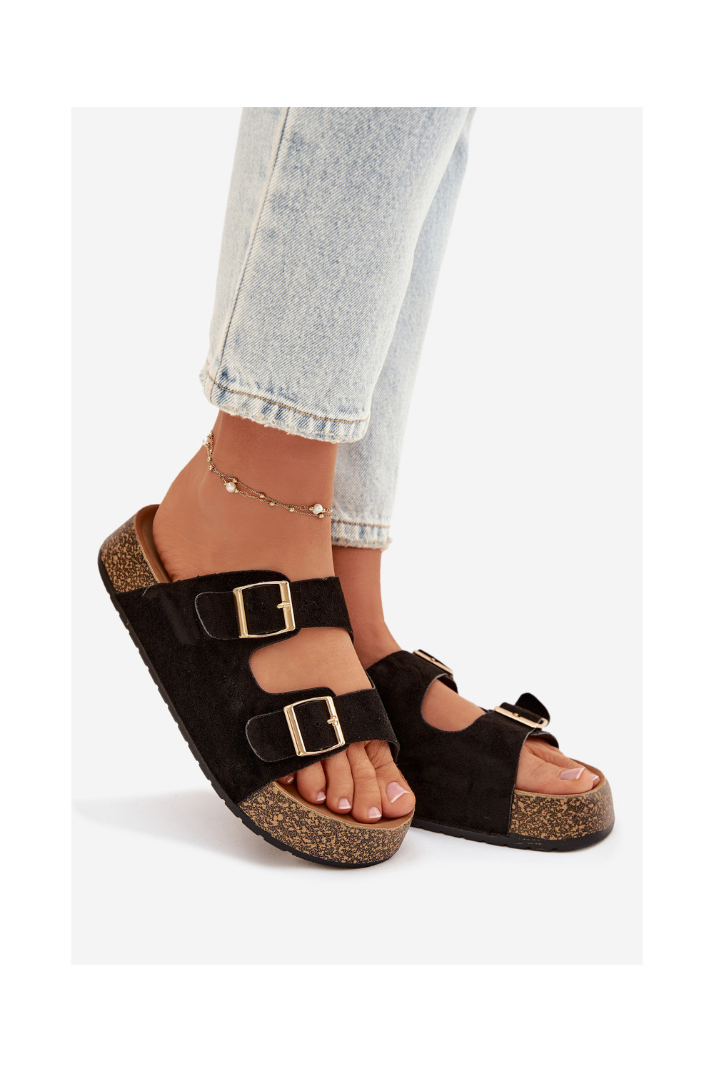 Melnā krāsas sieviešu čības ar platformu un zelta krāsas sprādzēm „Tovessa"