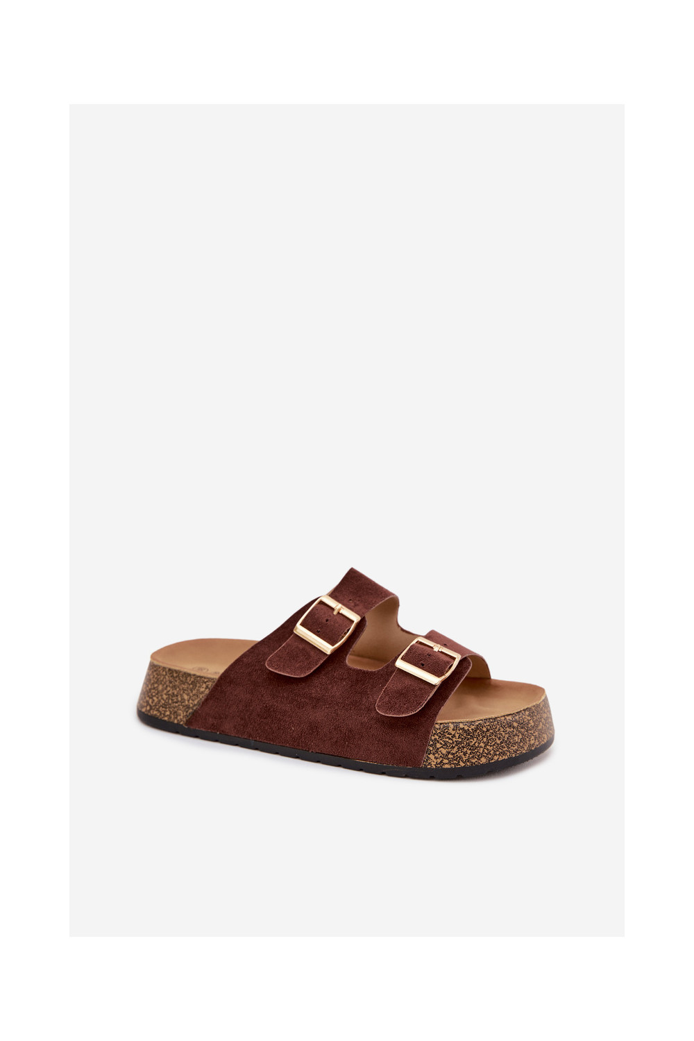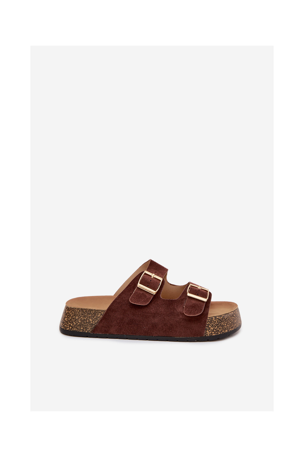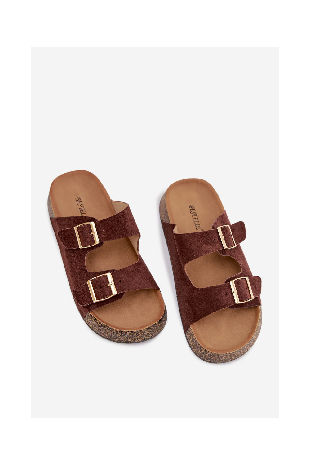Brūna krāsas sieviešu čības ar platformu un zelta krāsas sprādzēm „Tovessa"