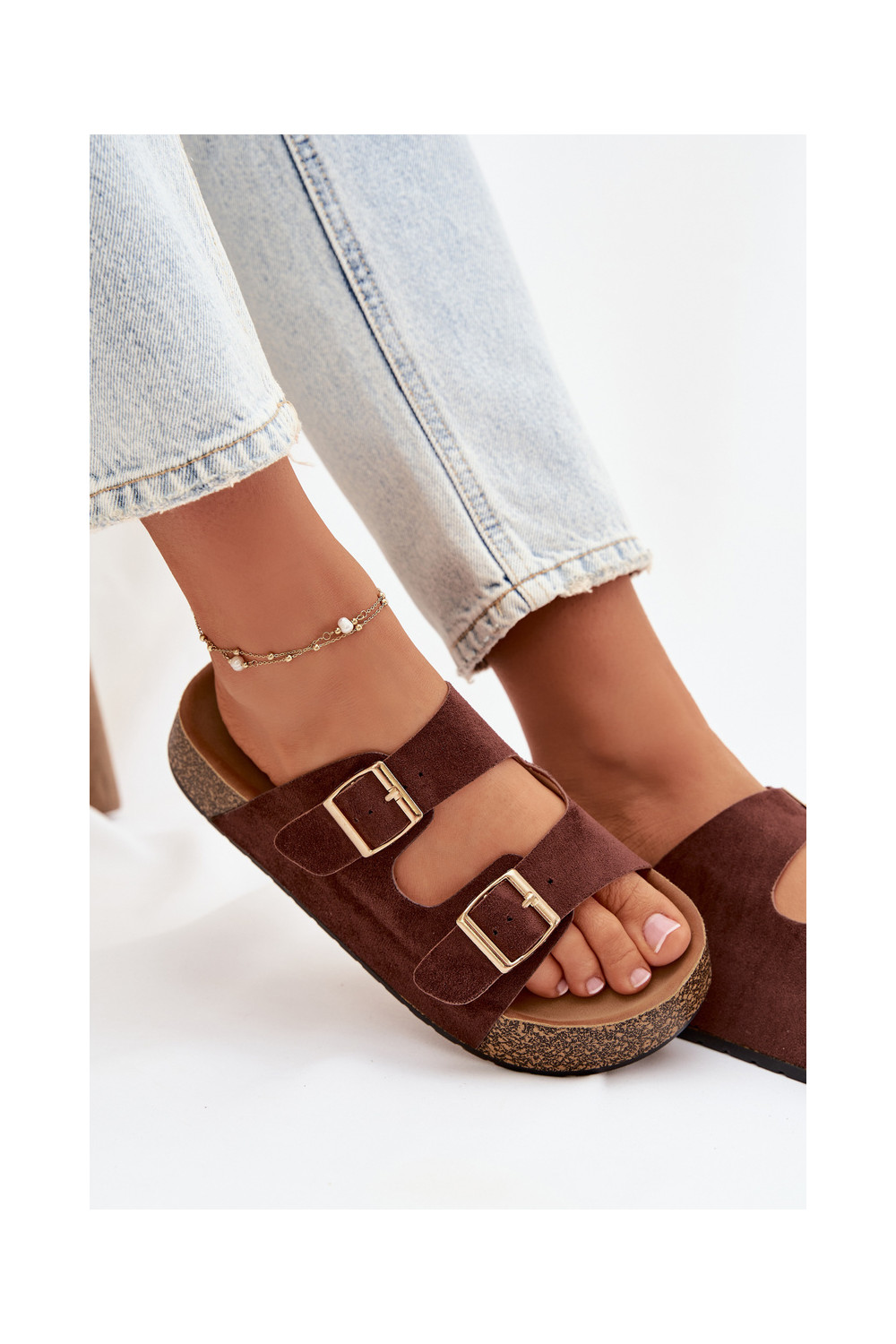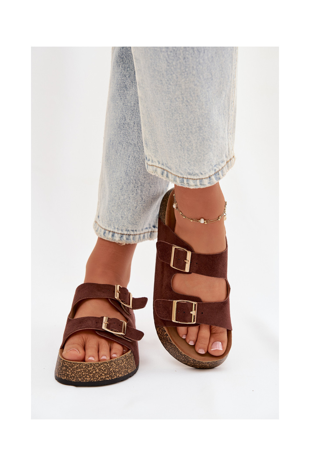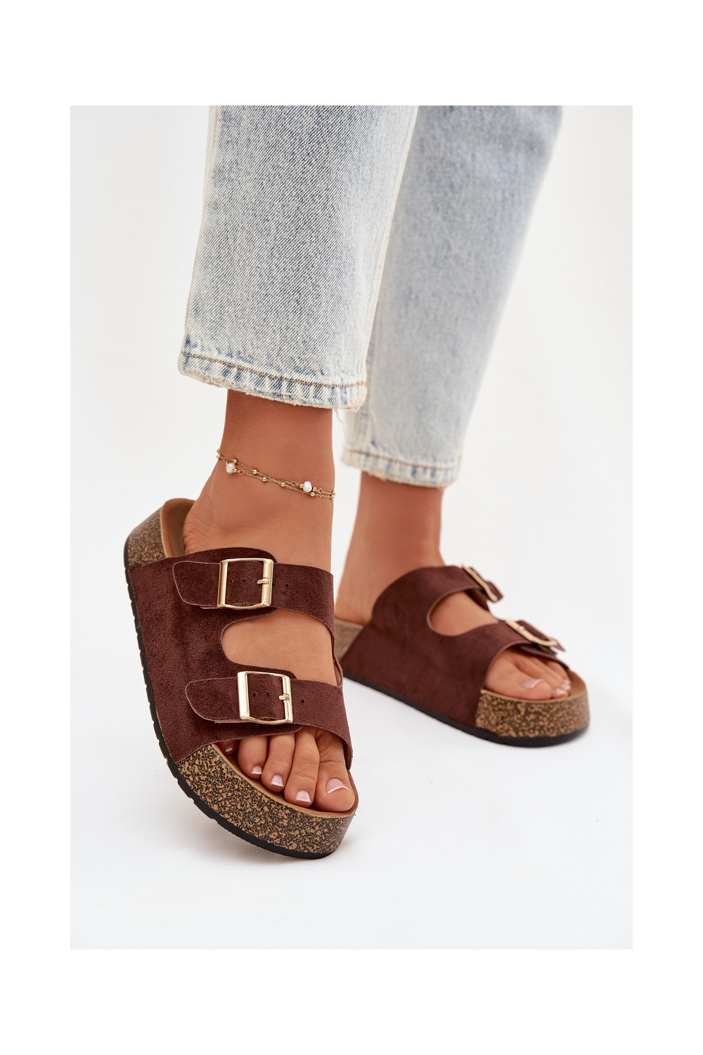 Brūna krāsas sieviešu čības ar platformu un zelta krāsas sprādzēm „Tovessa"