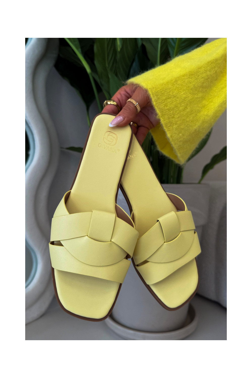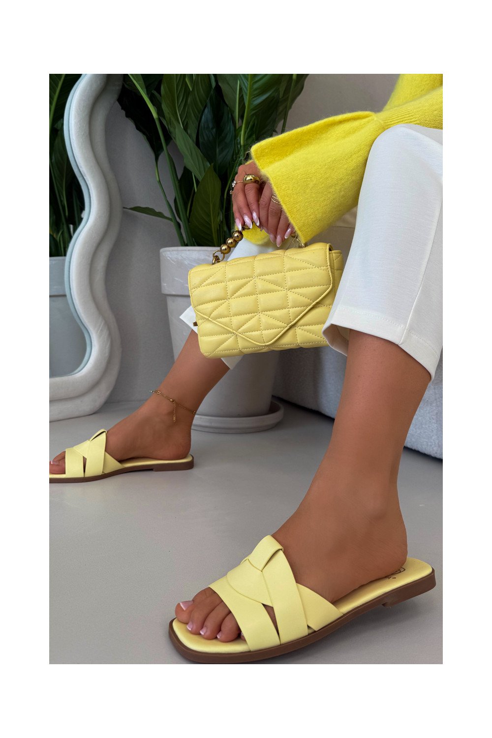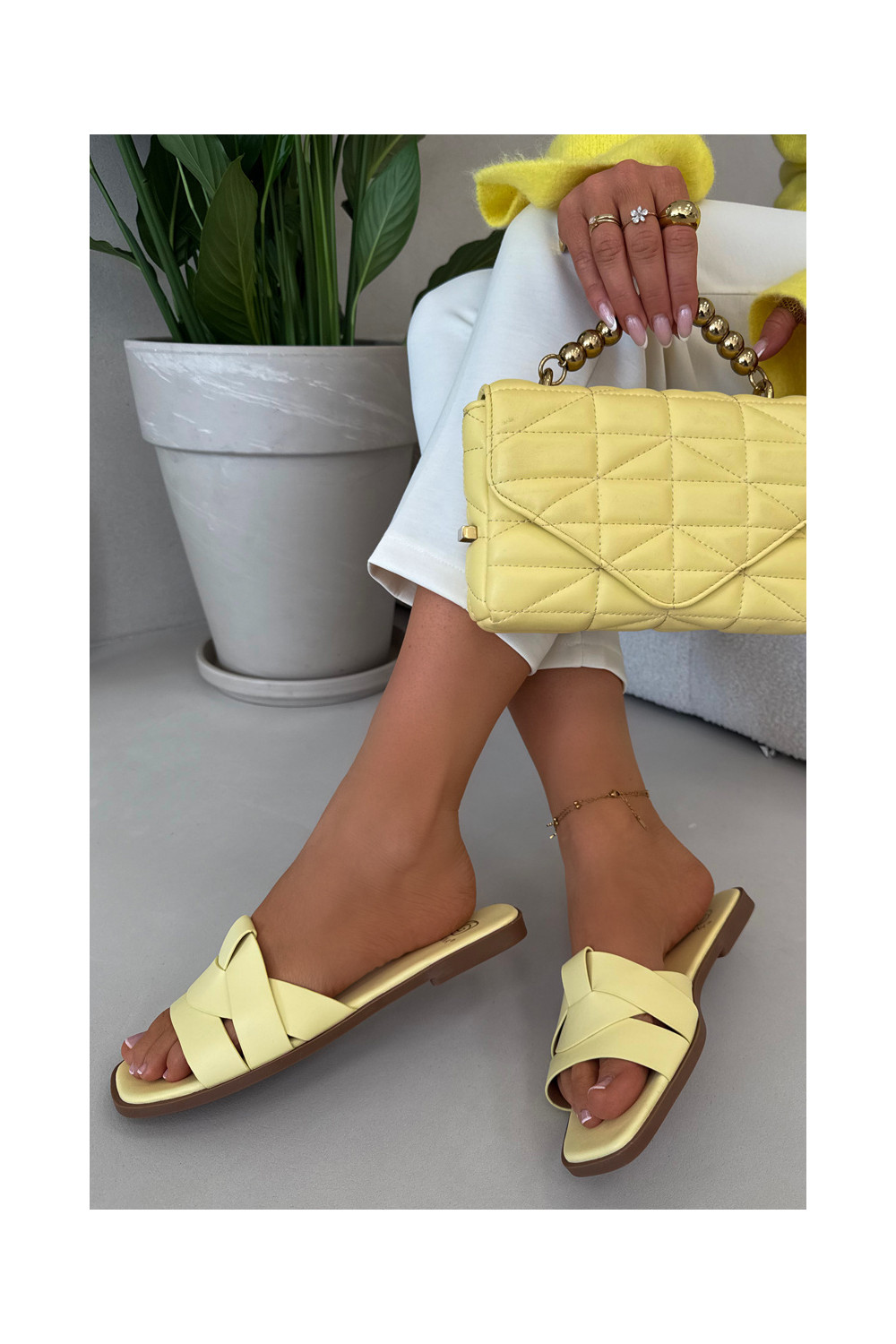 Sieviešu plakanās čības ar siksnām dzeltenā krāsā Tai turirissae