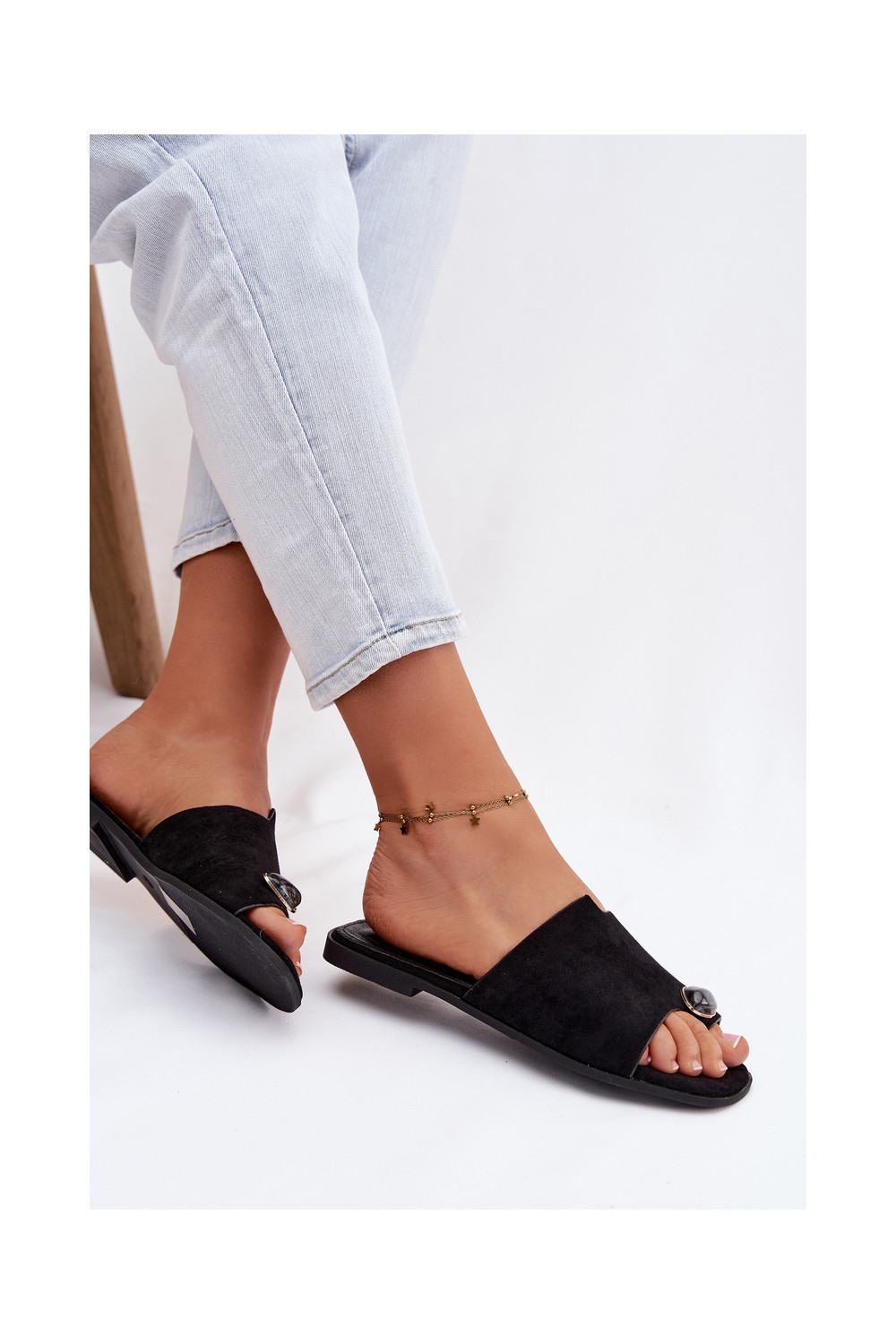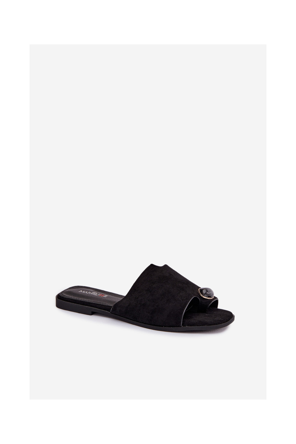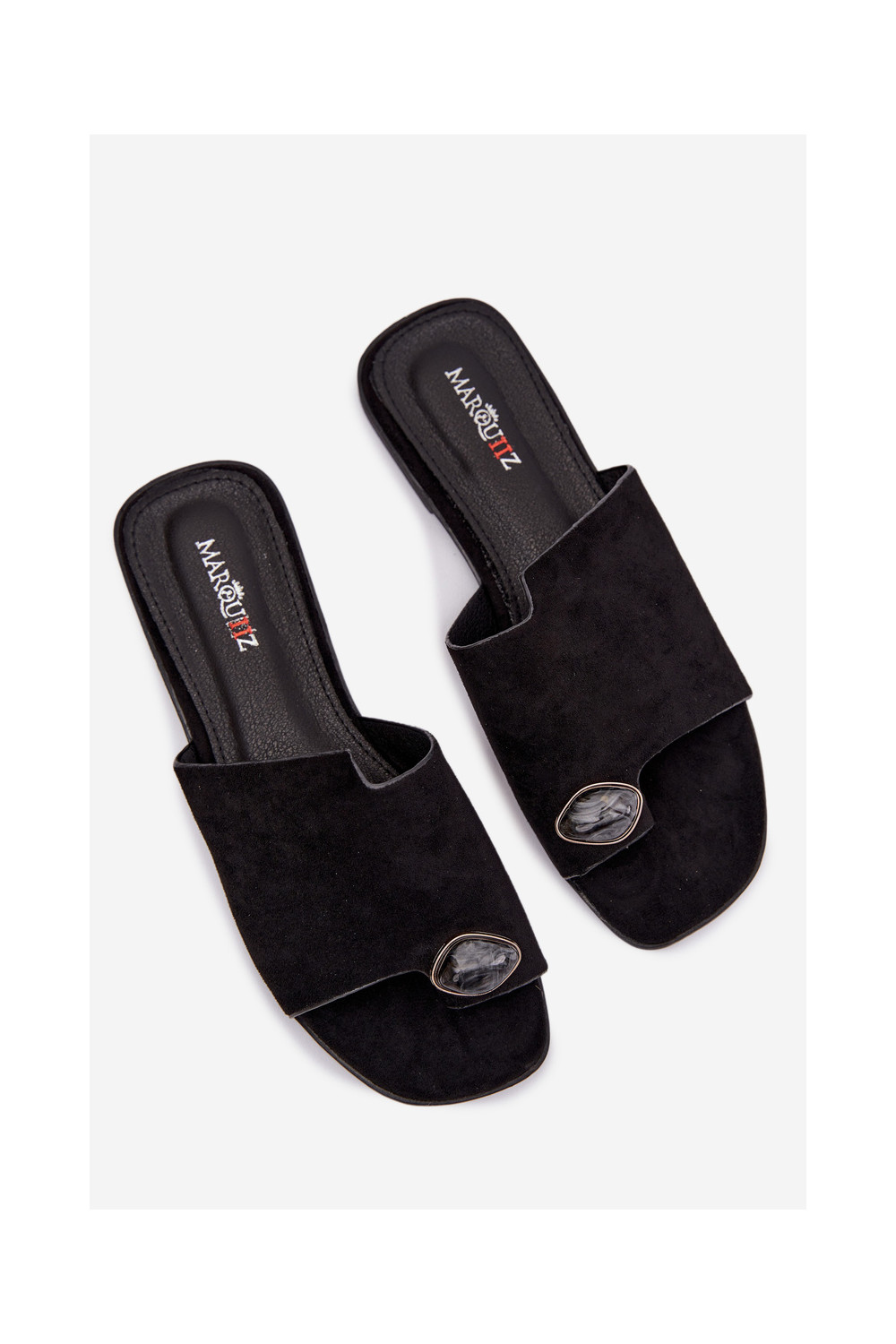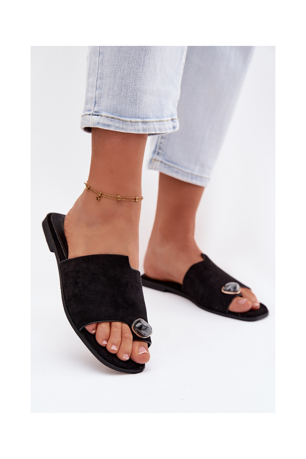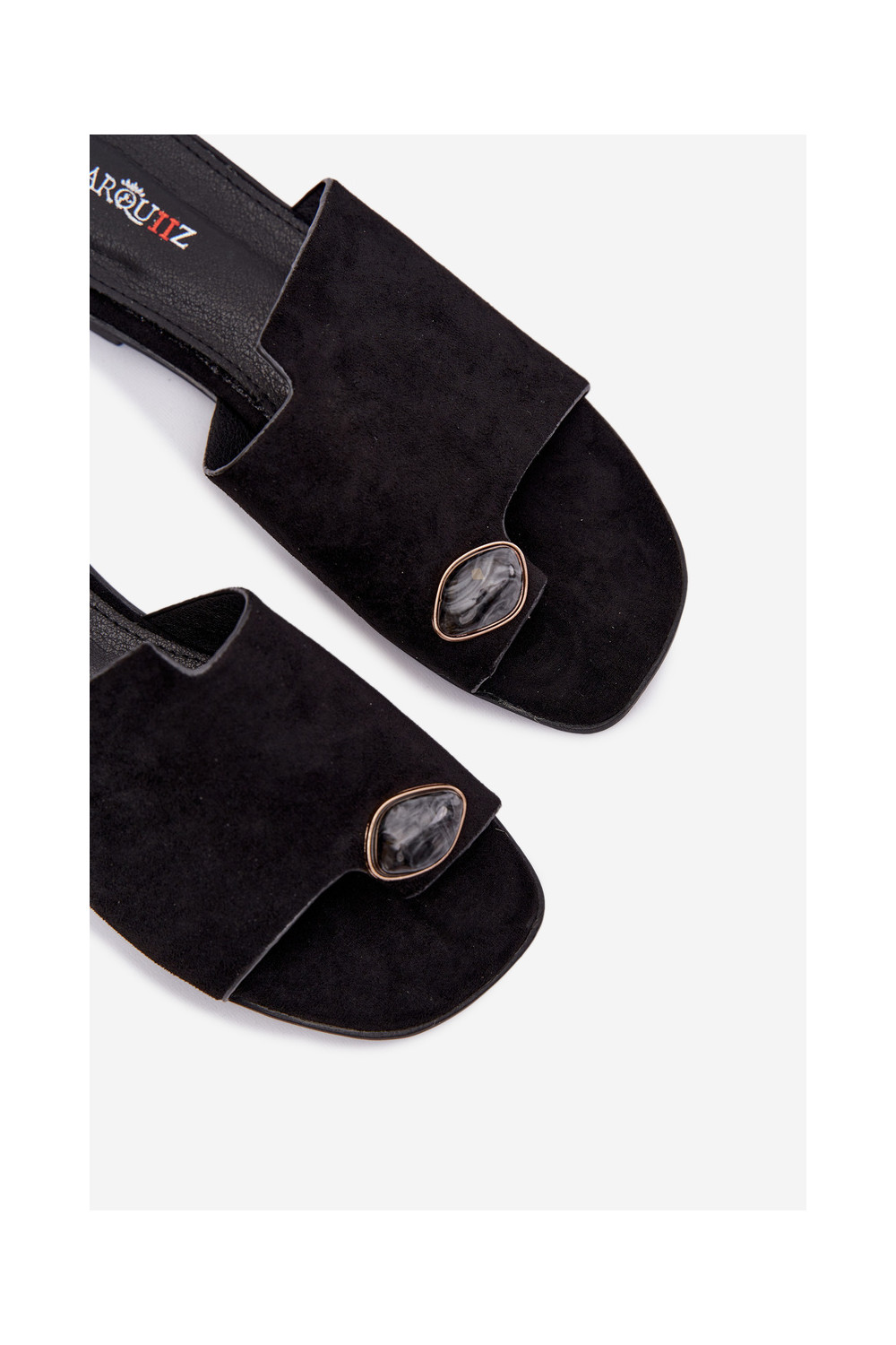 Sieviešu zemas čības ar greznām detaļām no mākslīgā zamša, melnā krāsā, Selavine