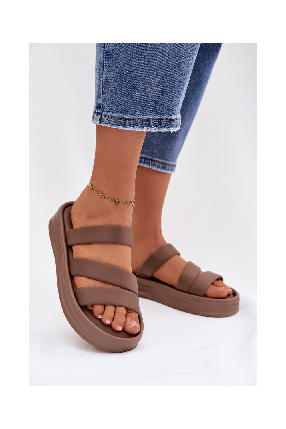 Sieviešu čības uz platformas ar siksniņām haki krāsā Liorine