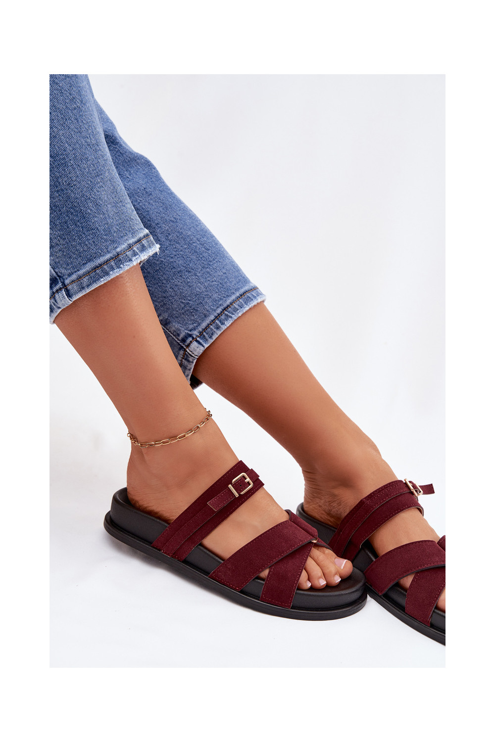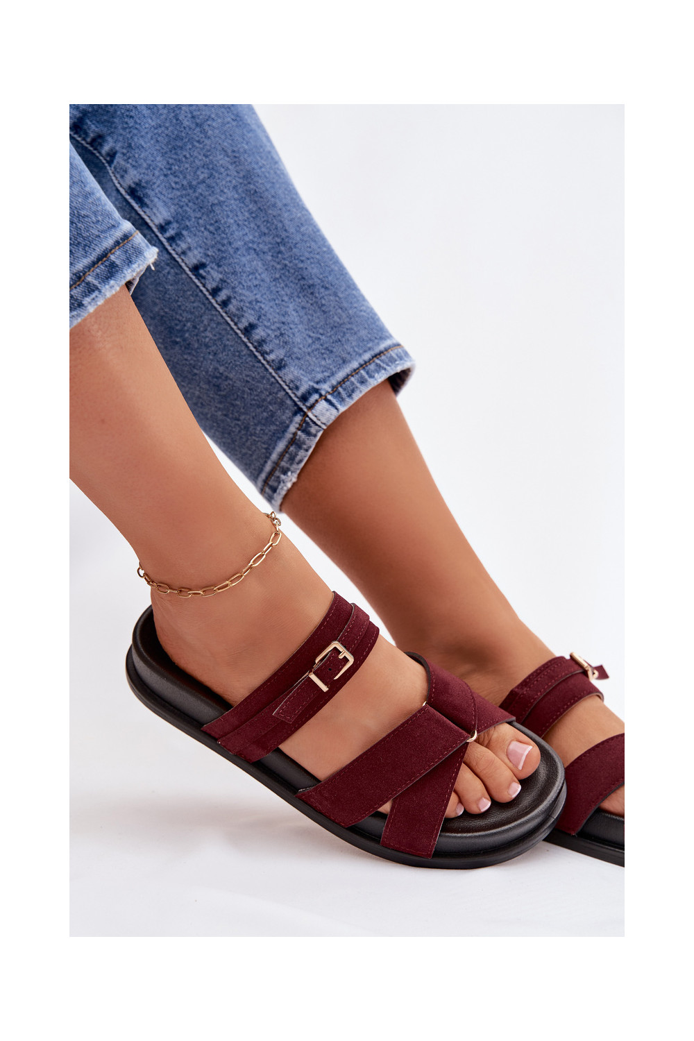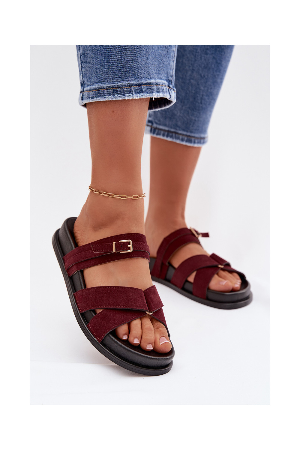 sieviešu čības Ar svītrām I Złotą ar sprādzēm bordo krāsas Selorina