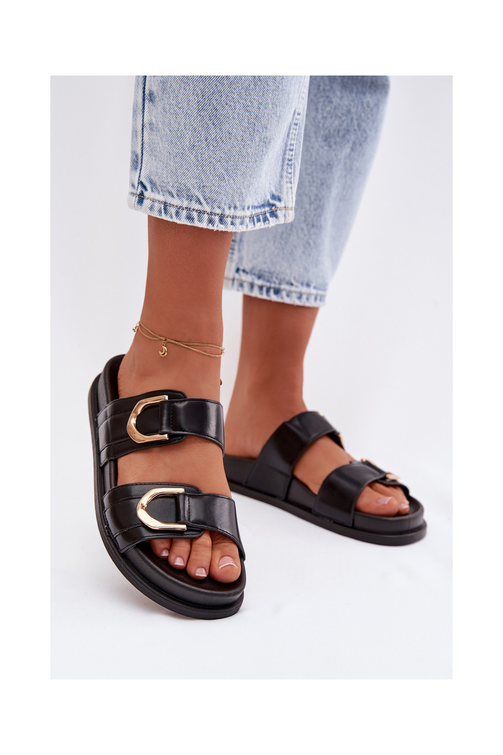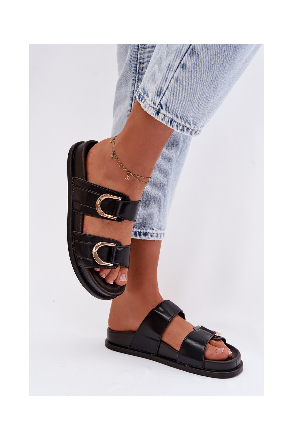 Mākslīgās ādas čības sievietēm ar lentītēm melnas krāsas Rosinessa