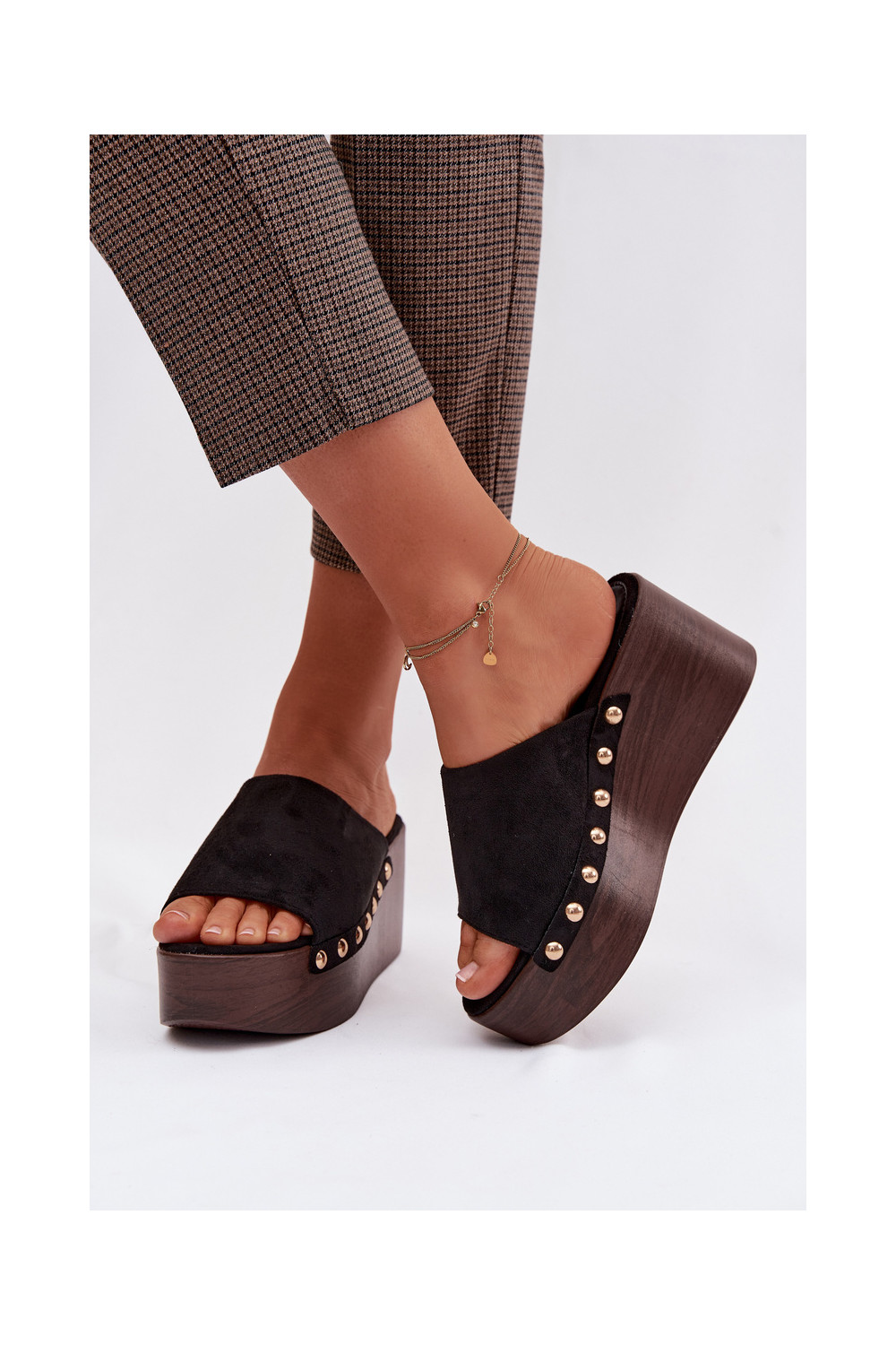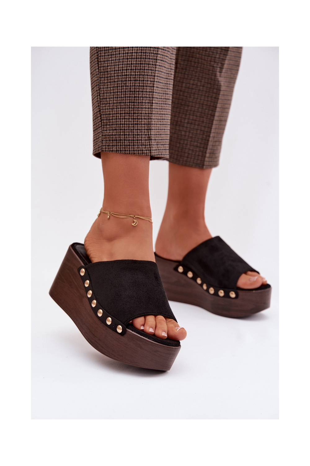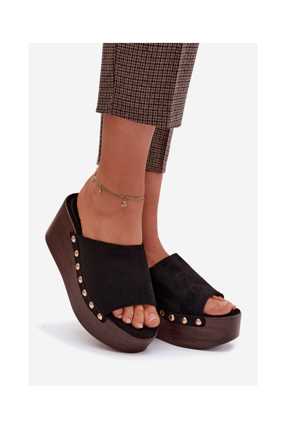 sieviešu čības Uz Ķīļa Ze Zelta krāsasmi Kniedes Eko zamšādaoIne melnas krāsas Helivina