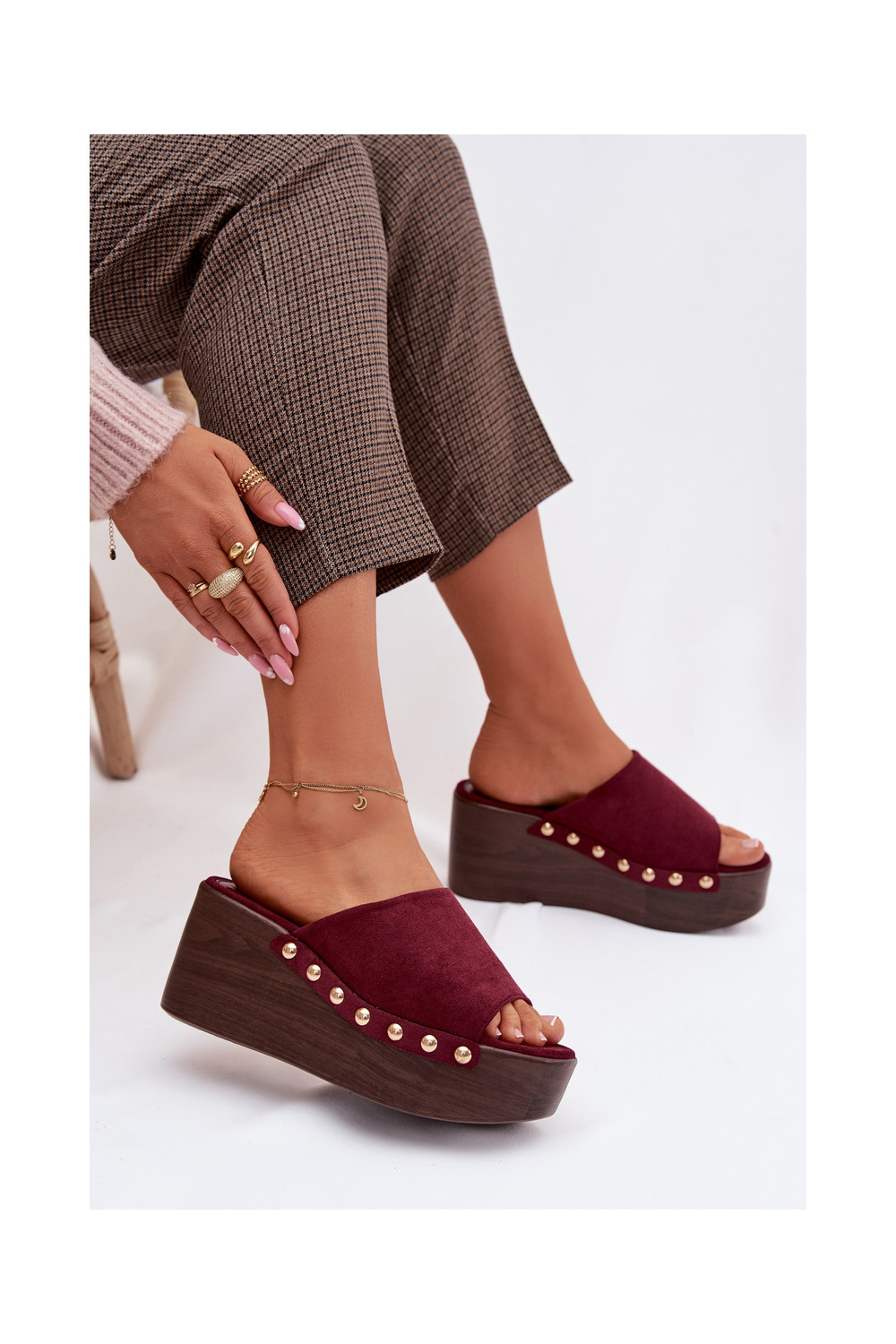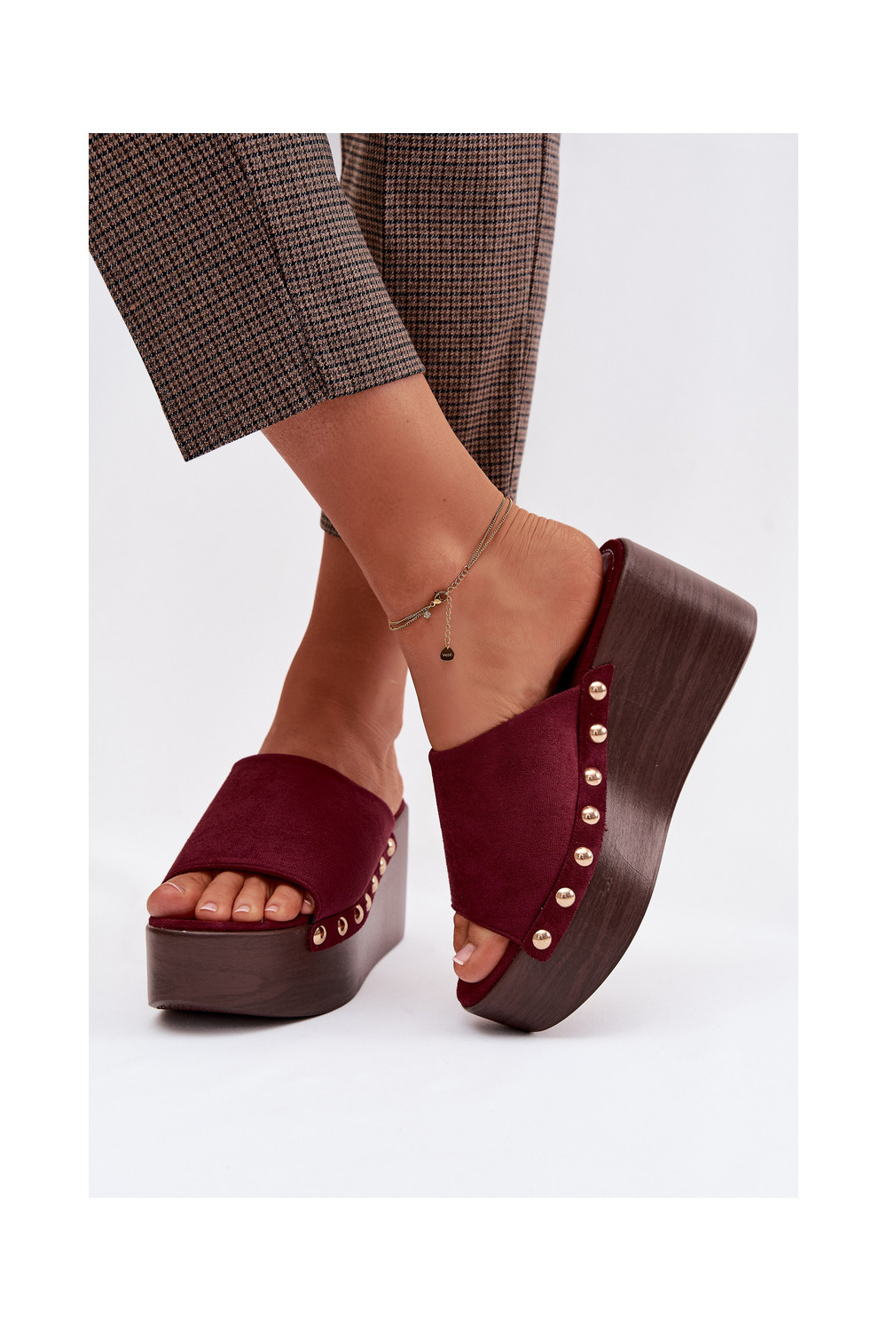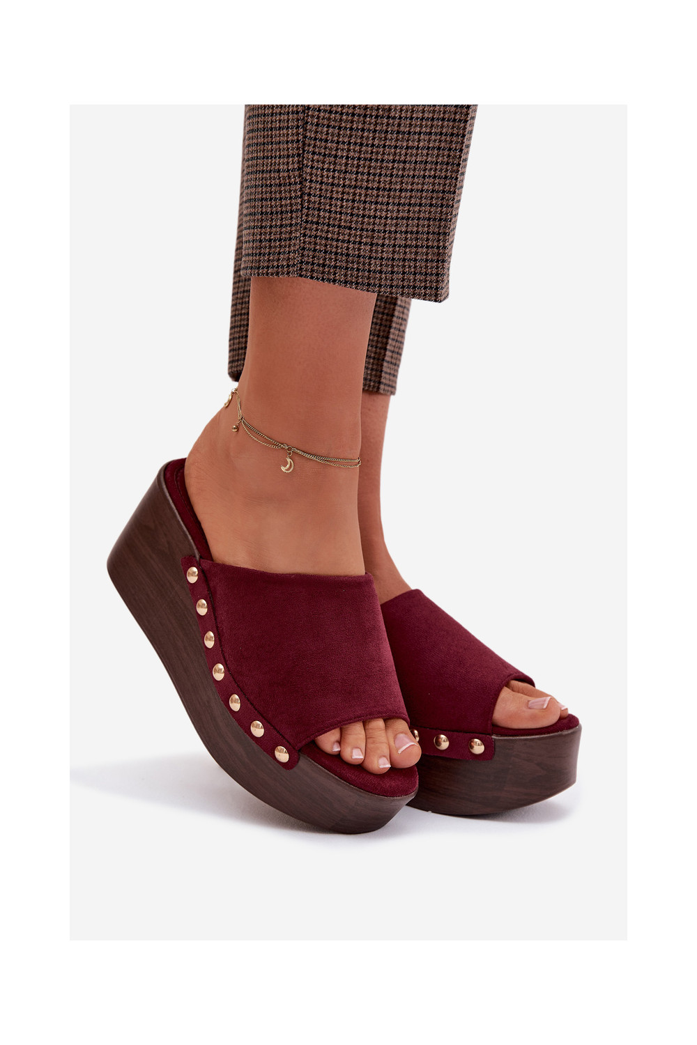 sieviešu čības Uz Ķīļa Ze Zelta krāsasmi Kniedes Eko zamšādaoIne bordo krāsas Helivina