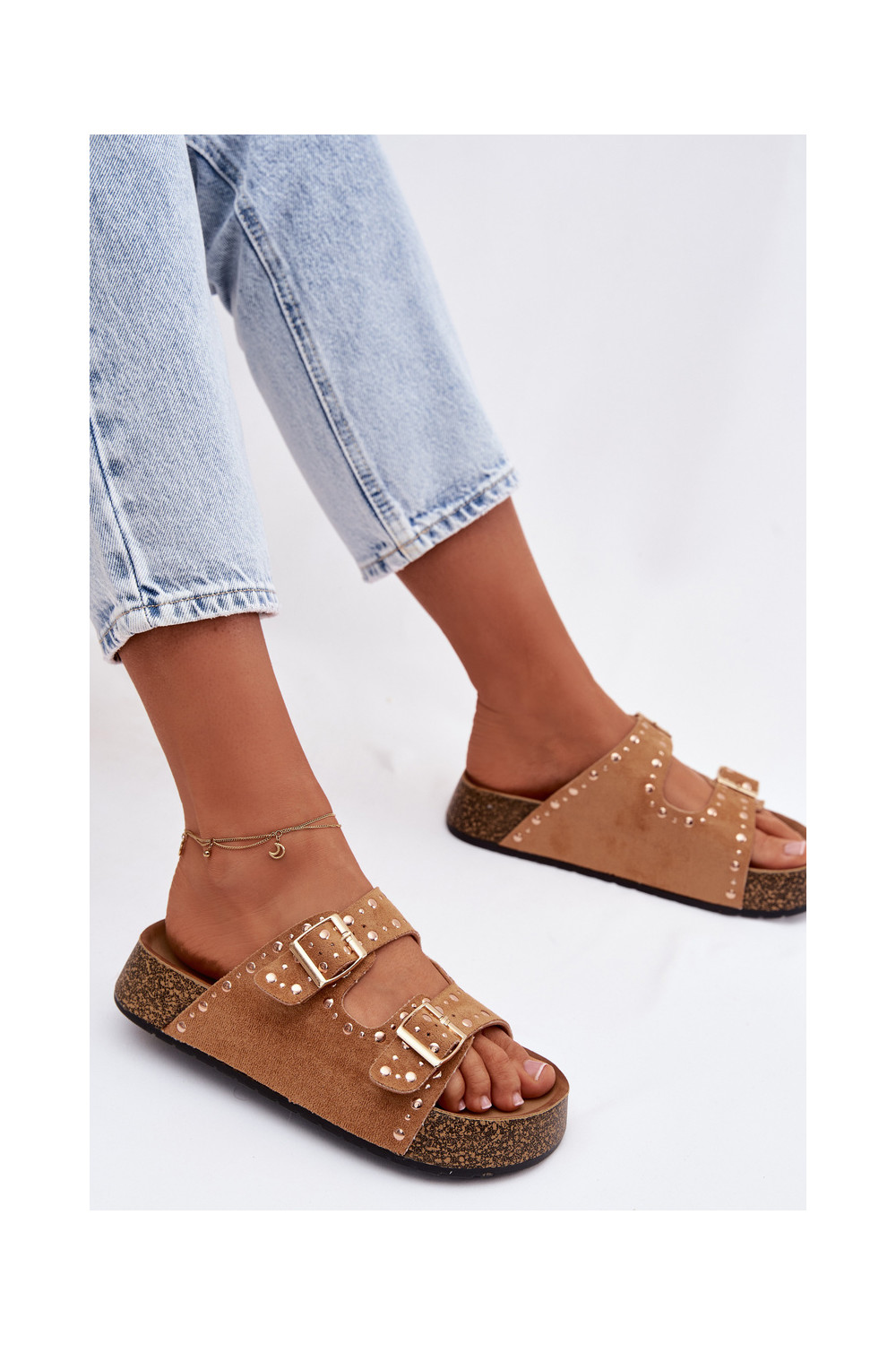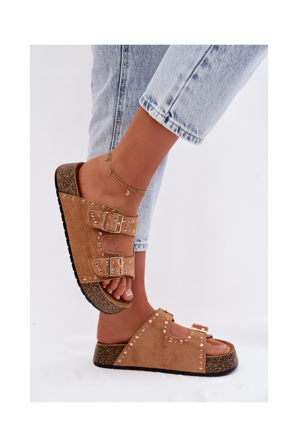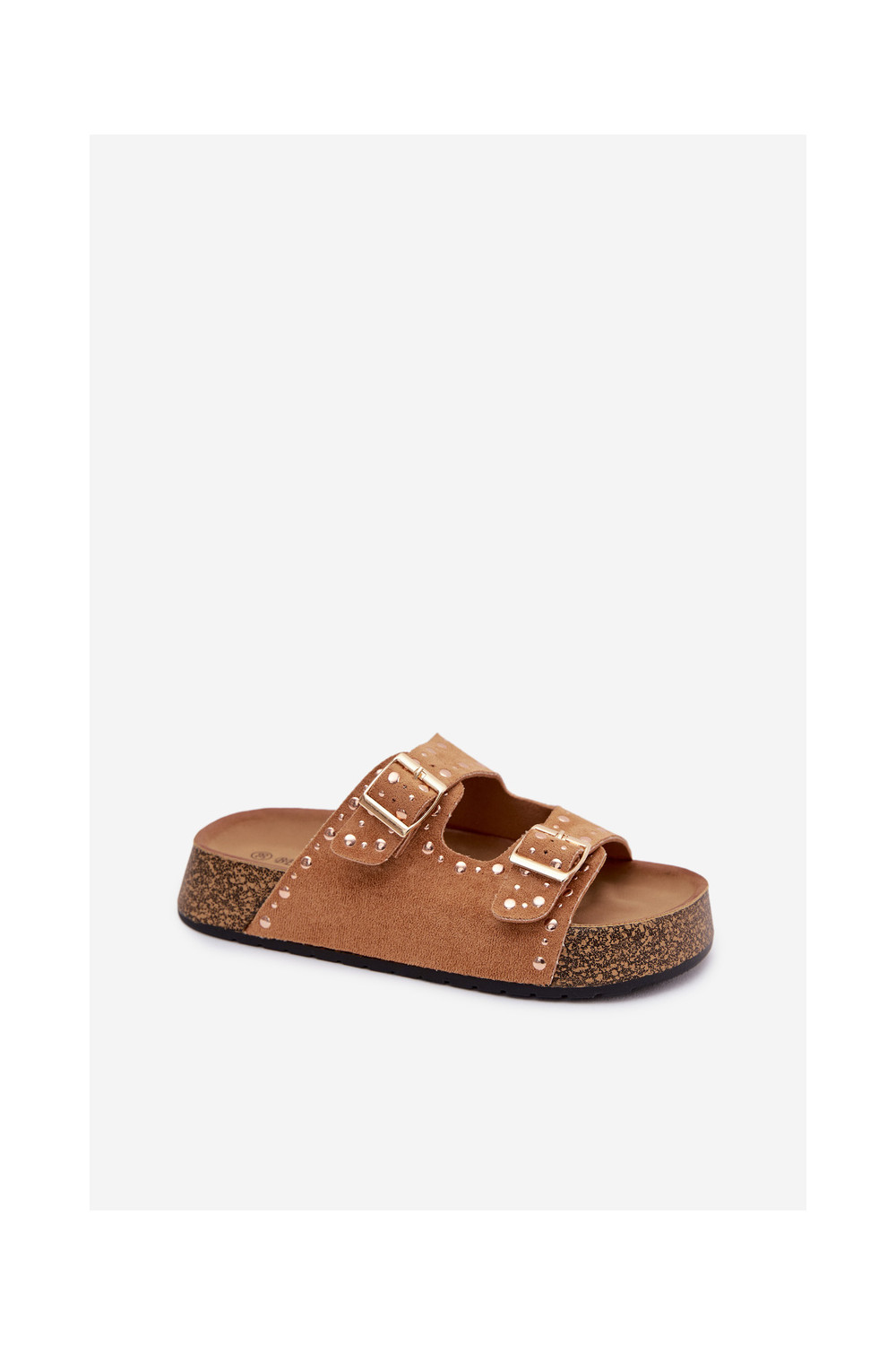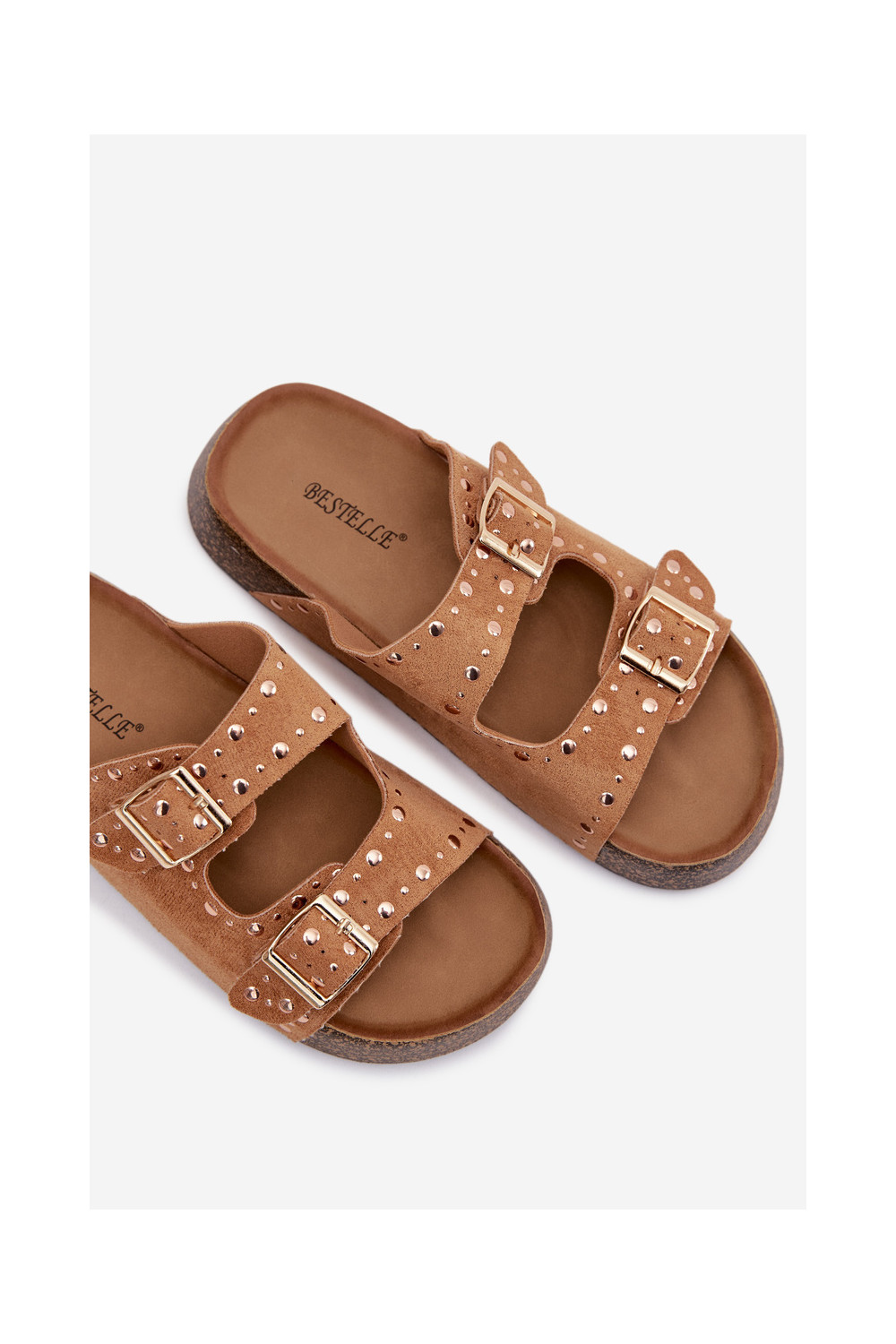 sieviešu čības Ze Zelta krāsasmi ar sprādzēmmi Un kniedes brūnas krāsas Tervina