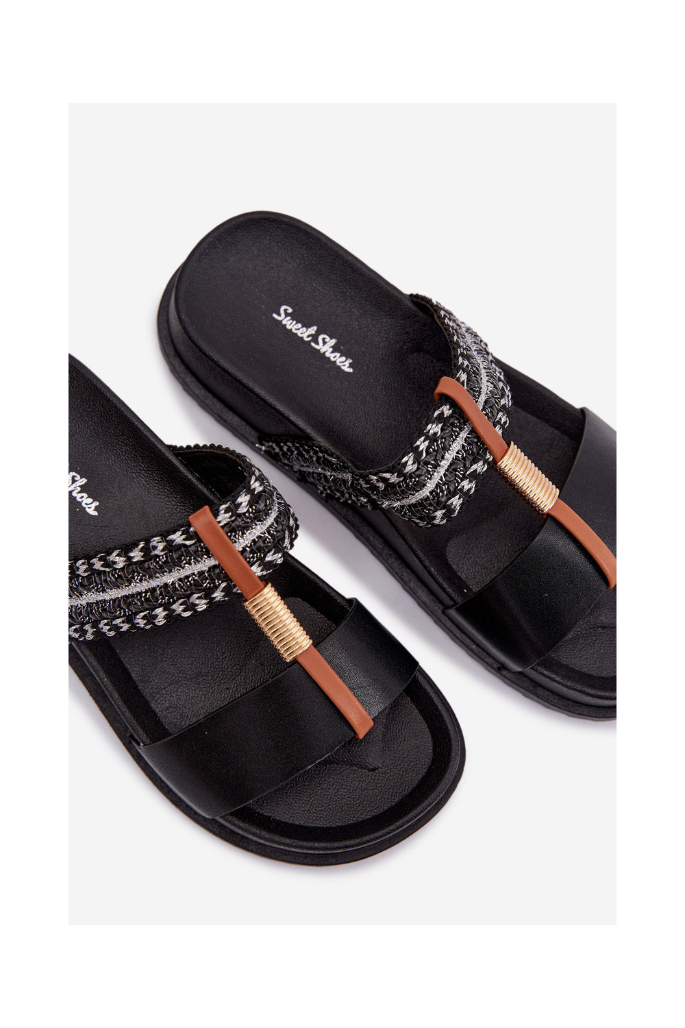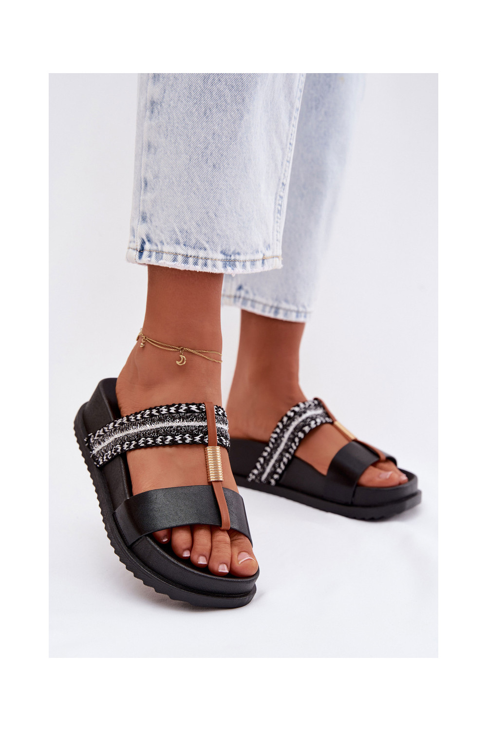 sieviešu čības ar platformu Ar svītrām I Zelta krāsasm Detalem melnas krāsas Tahlia