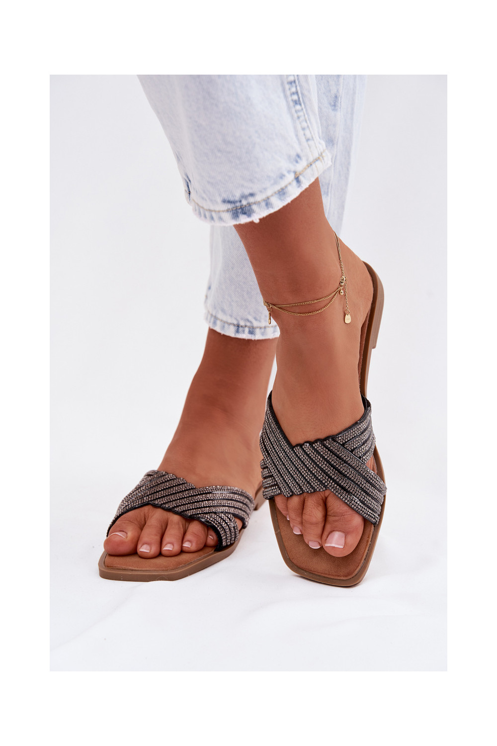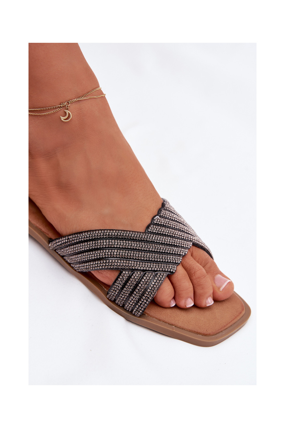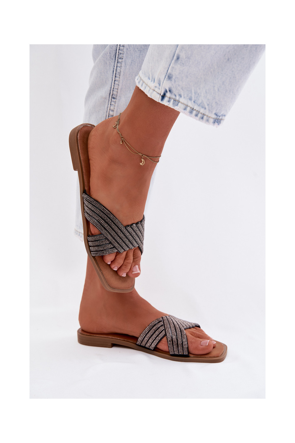 sieviešu čības ar platiem papēžiem ar mirdzošiem spīdumiņiem melnas krāsas Zinnia