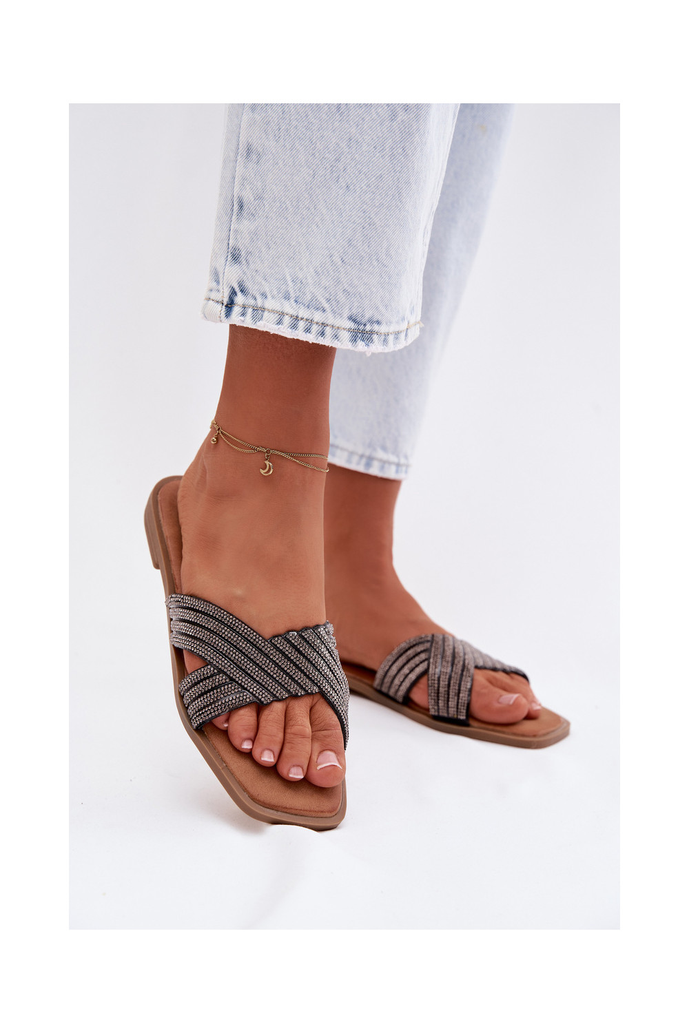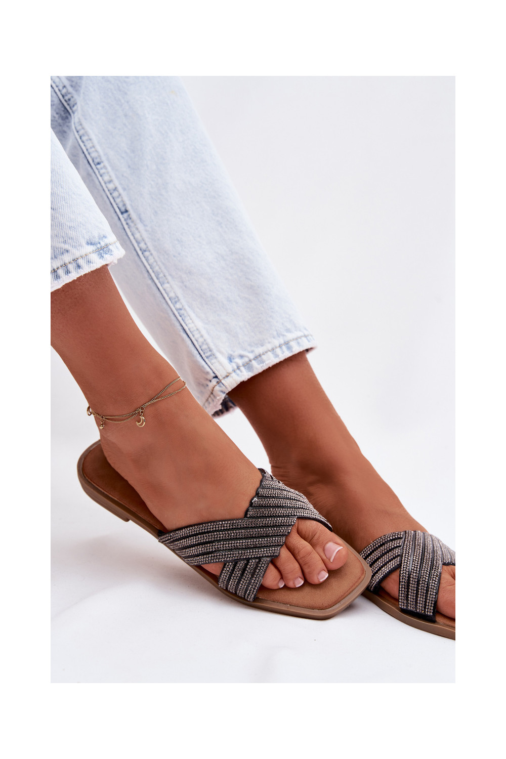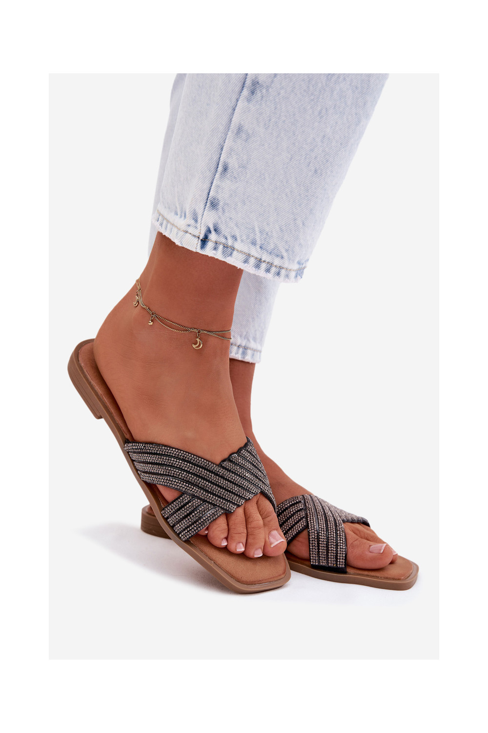 sieviešu čības ar platiem papēžiem ar mirdzošiem spīdumiņiem melnas krāsas Zinnia