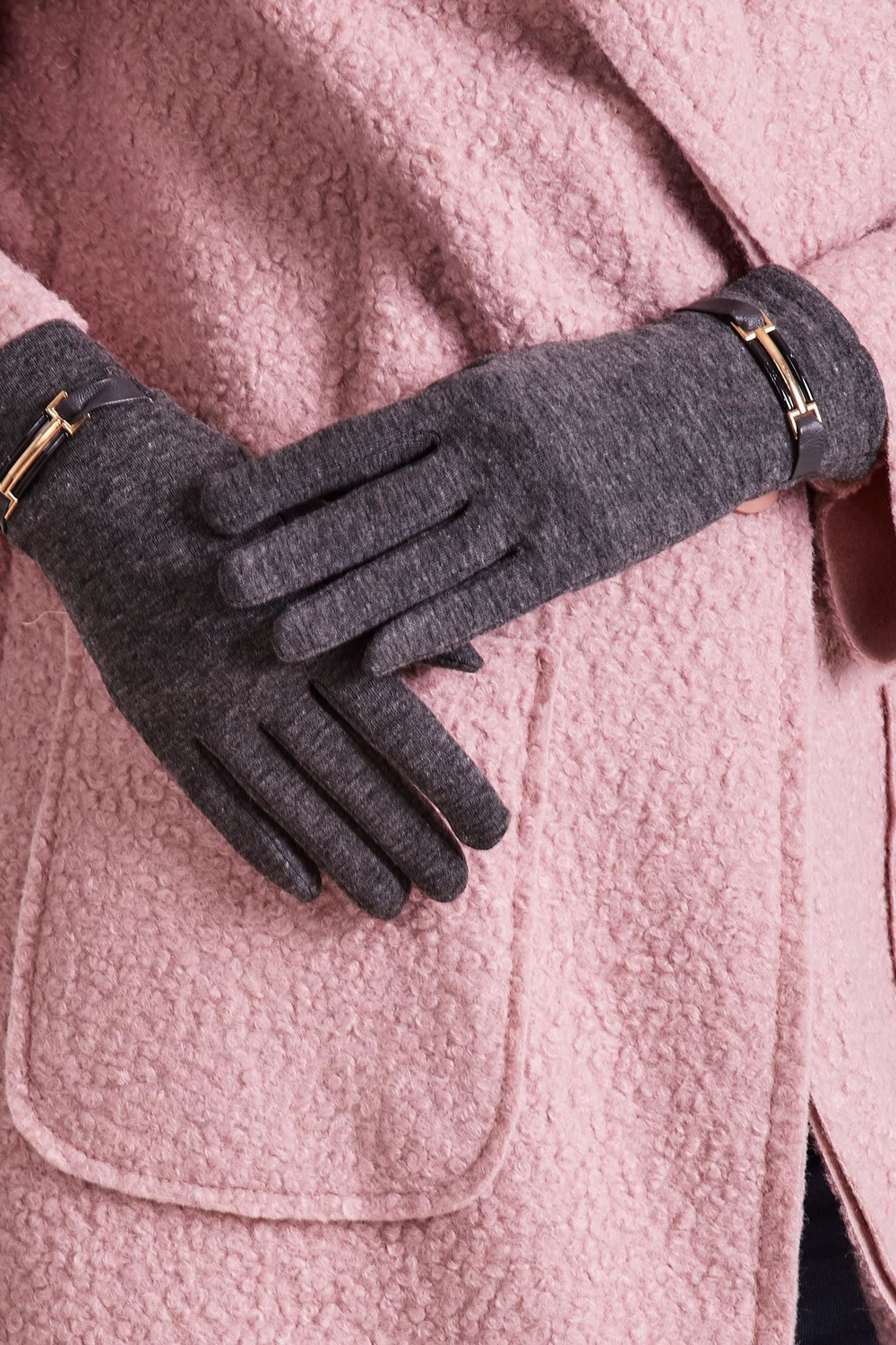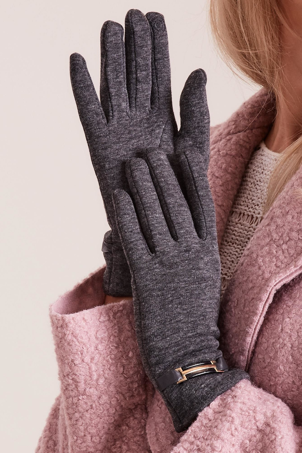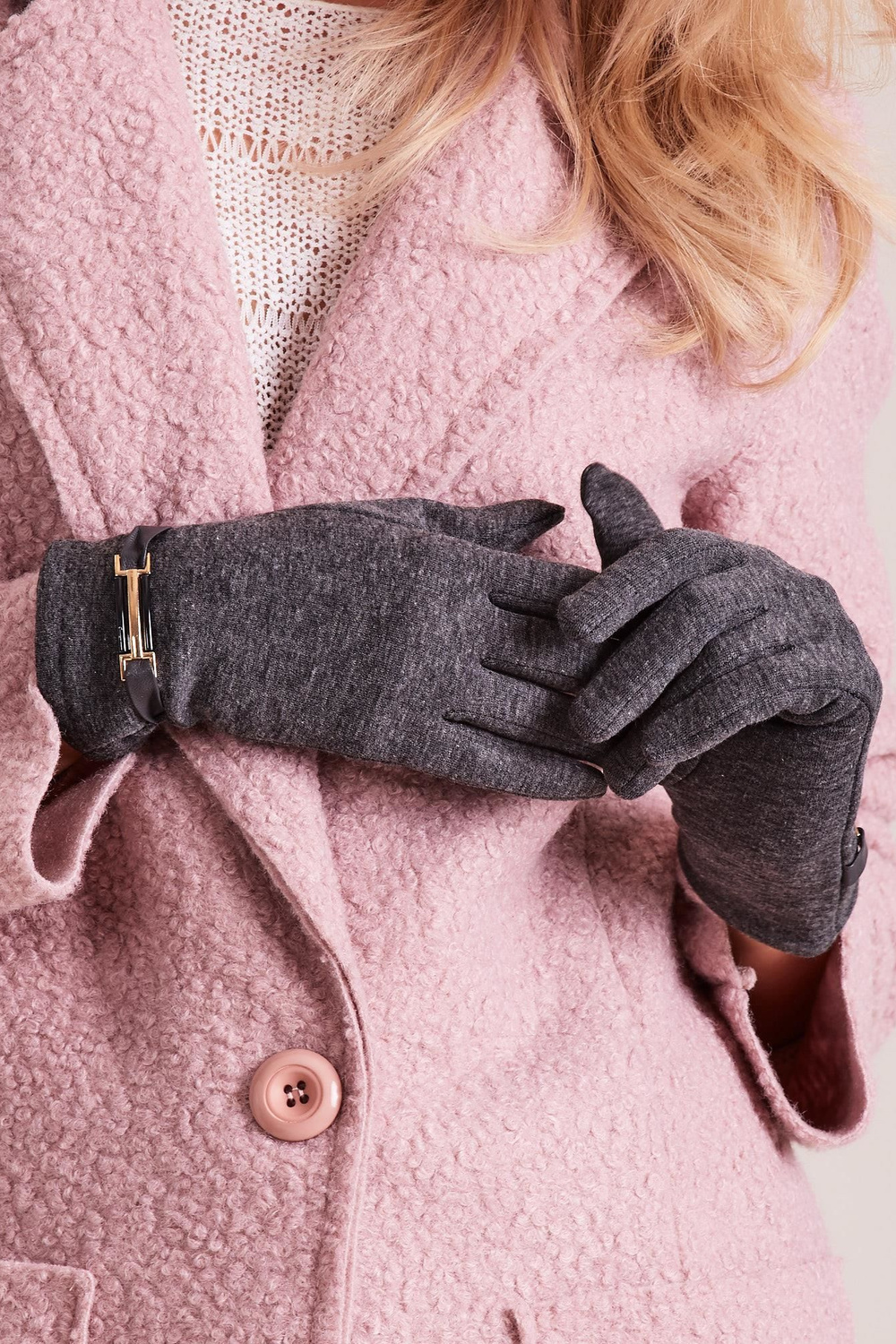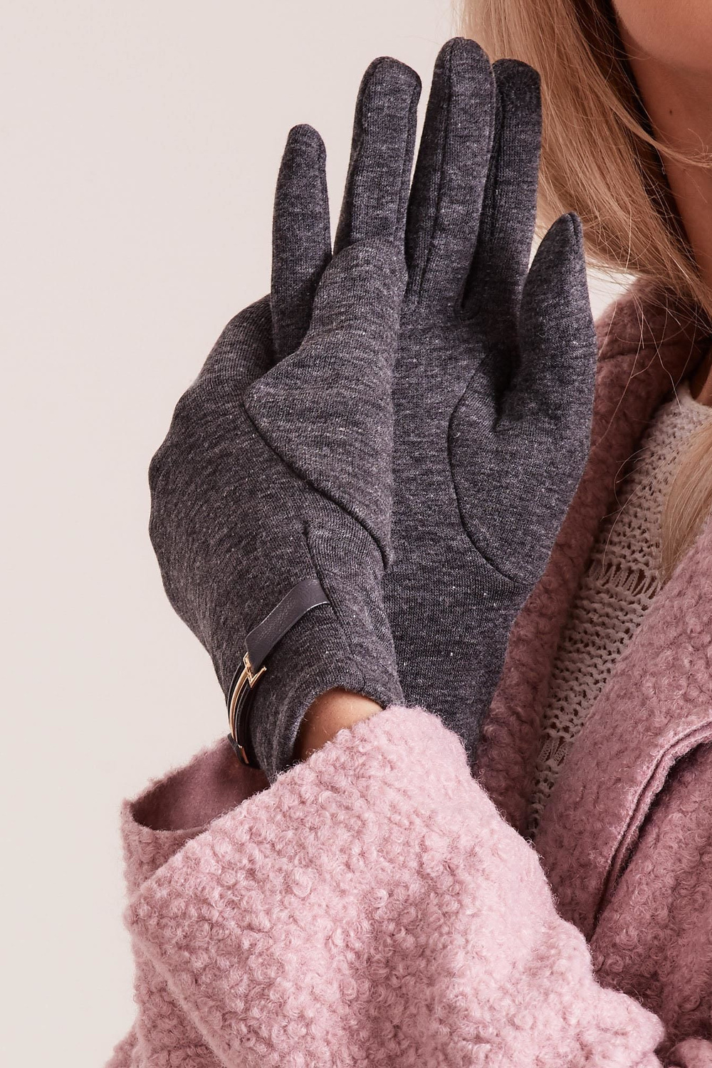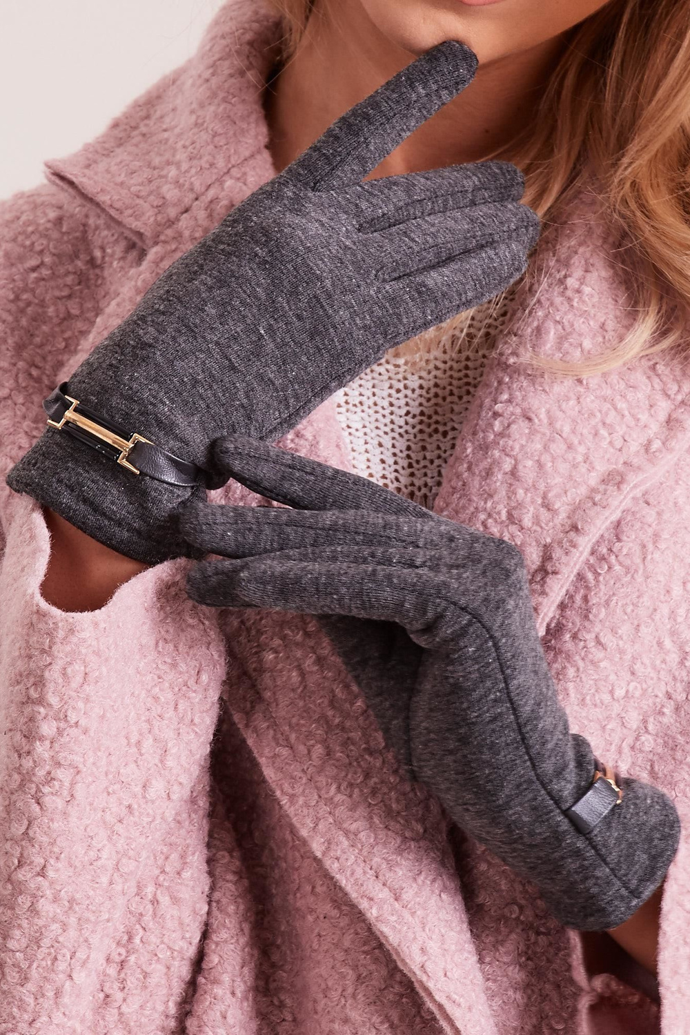 Tumši pelēki sieviešu cimdi ar sprādzi
