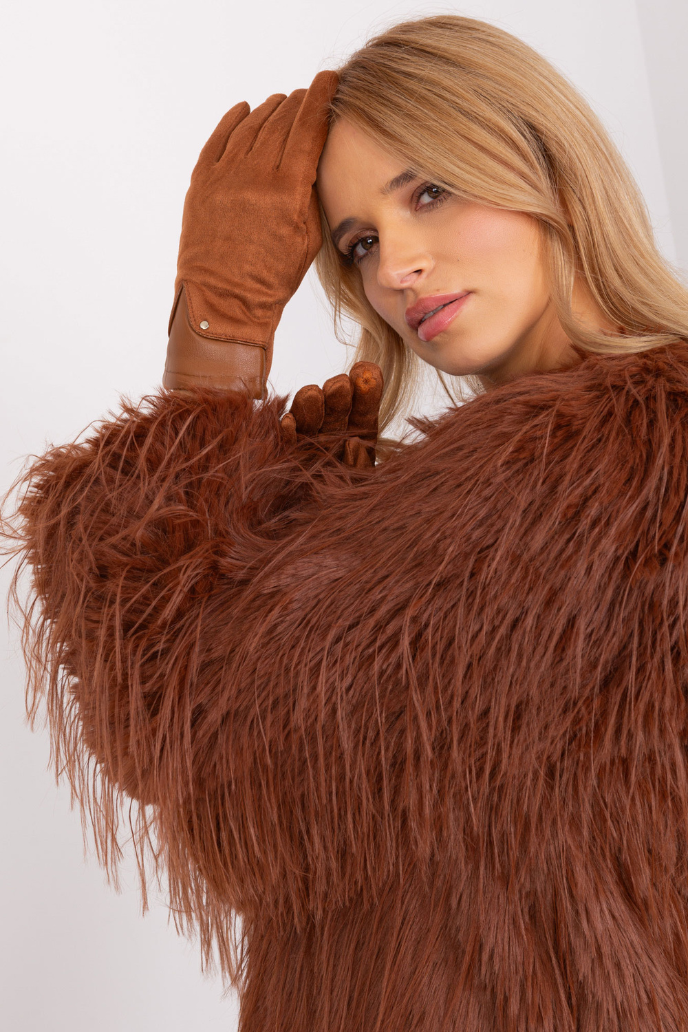 Gaiši brūni eleganti sieviešu cimdi .
