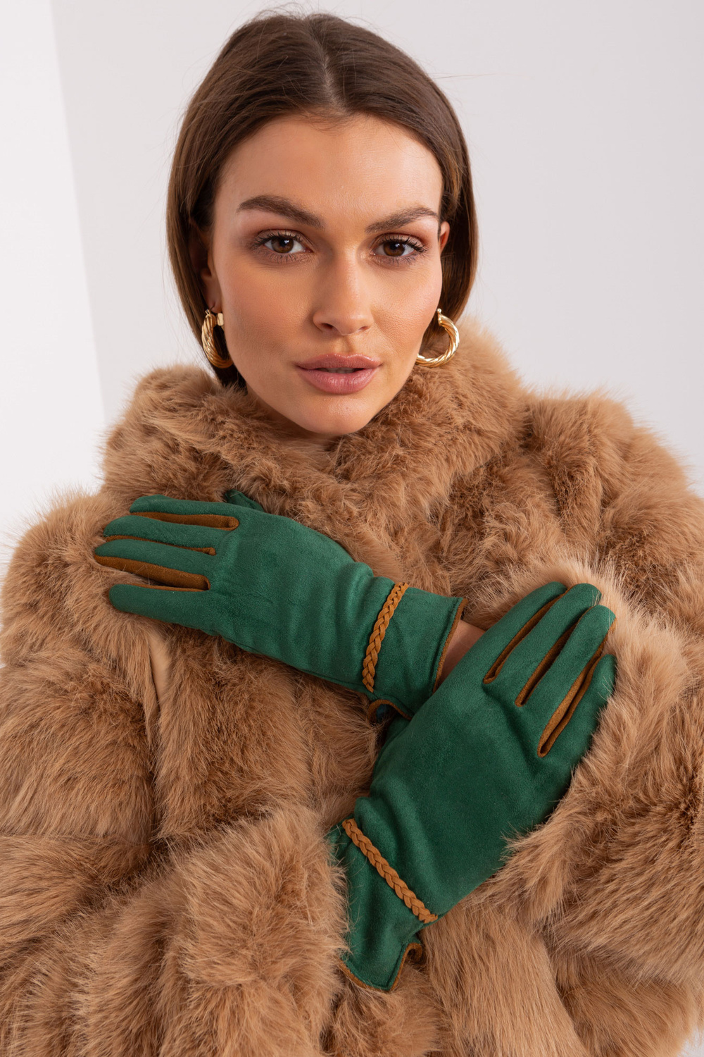Zaļi eleganti sieviešu cimdi .