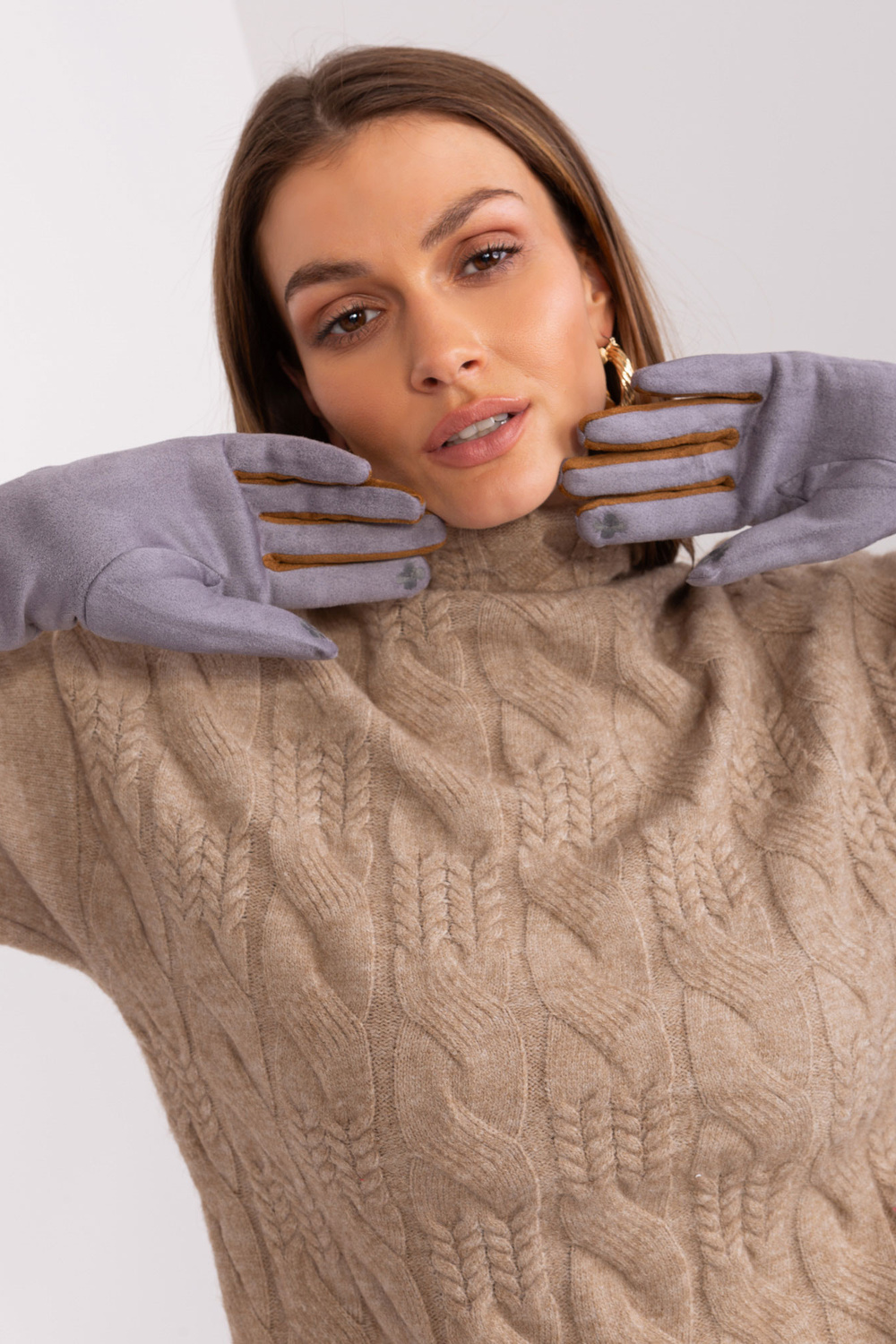 Pelēki sieviešu cimdi ar dekoratīvu siksniņu .
