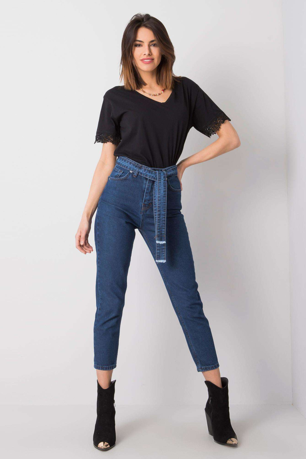 Zilas džinsa bikses ar augstu jostasvietu Kiara RUE PARIS. papildus: siksnas materiālssastāvs: 100% kokvilna mazgāšanas metode: veļas mašīna 30°C Modelis valkā 27. izmēru. Modeļa izmēri: augstums 174 cm, krūtis 86 cm, viduklis 60 cm, gurni 86 cm. Bikšu izmēri s