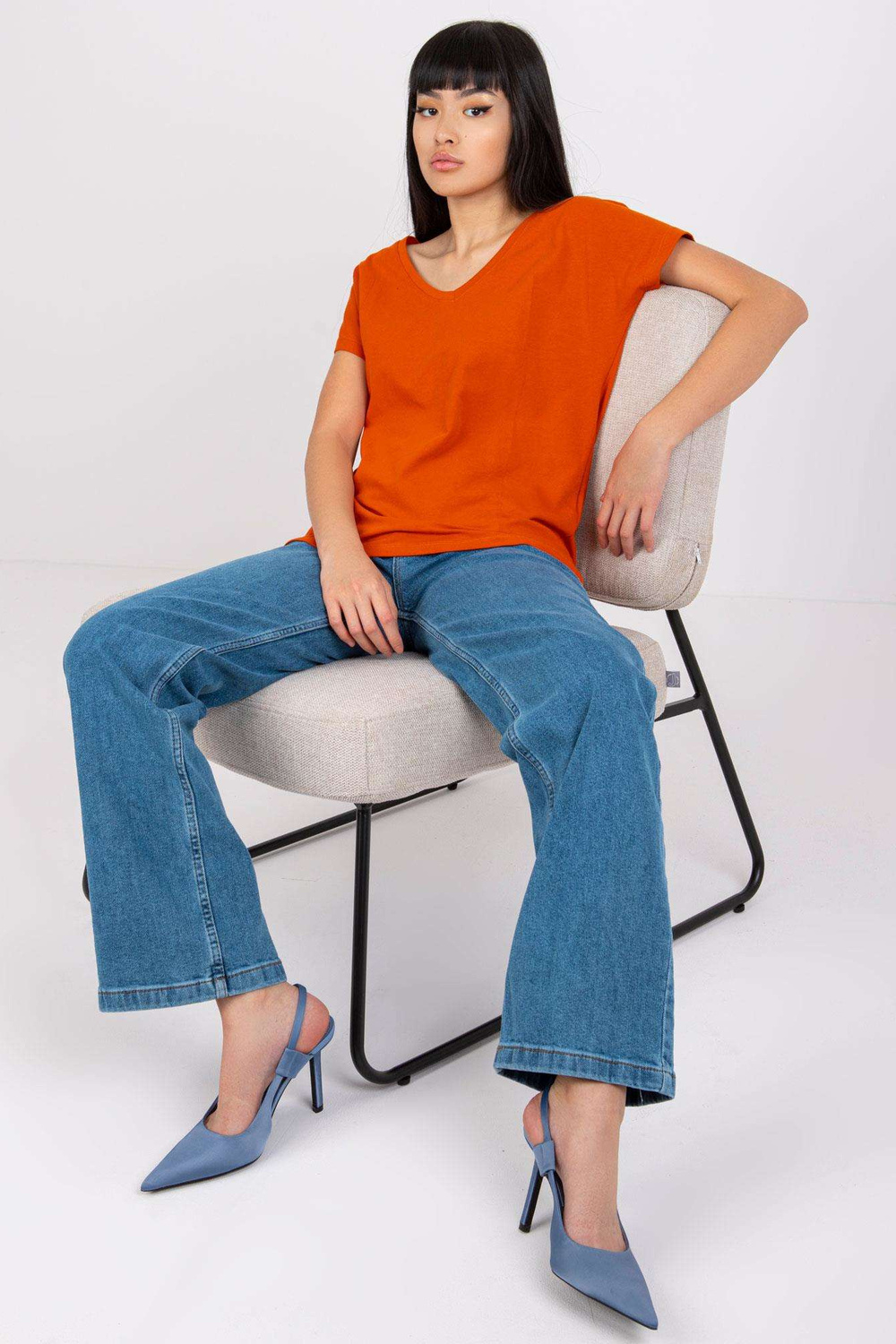 Modelis valkā 27. izmēru Modeļa izmēri: augums 167 cm, krūtis 73 cm, viduklis 64 cm, gurni 91 cm.