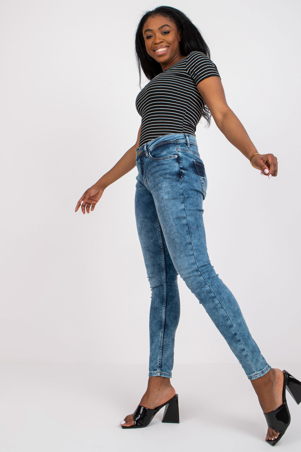 Modele valkā S izmēru. Modeļa izmēri: augums 169 cm, krūtis 86 cm, viduklis 67 cm, gurni 88 cm.
