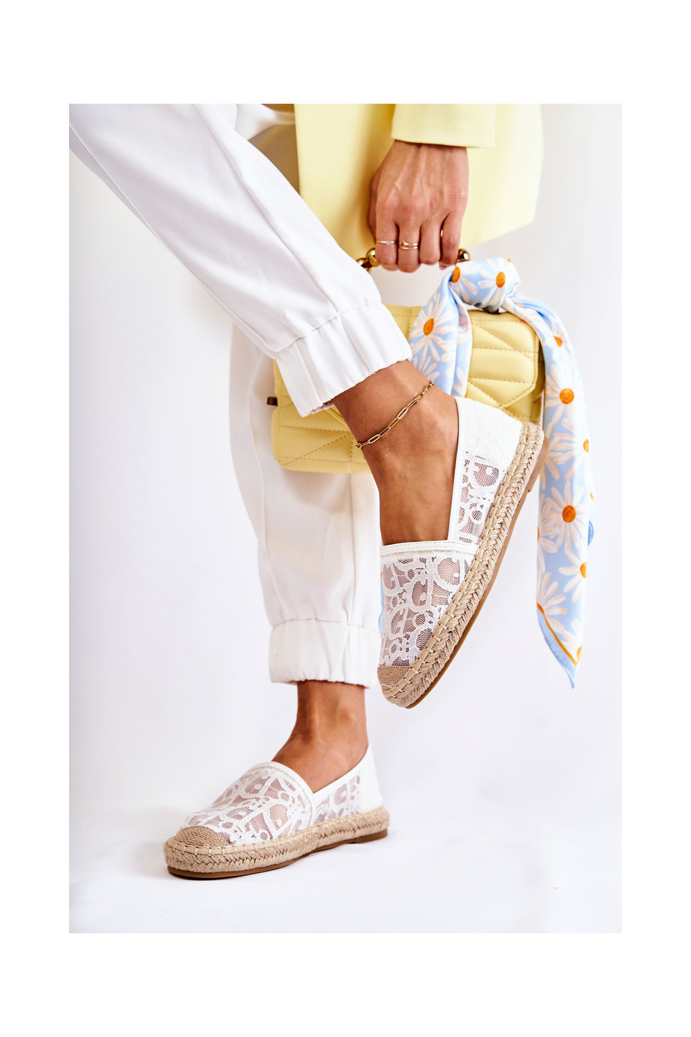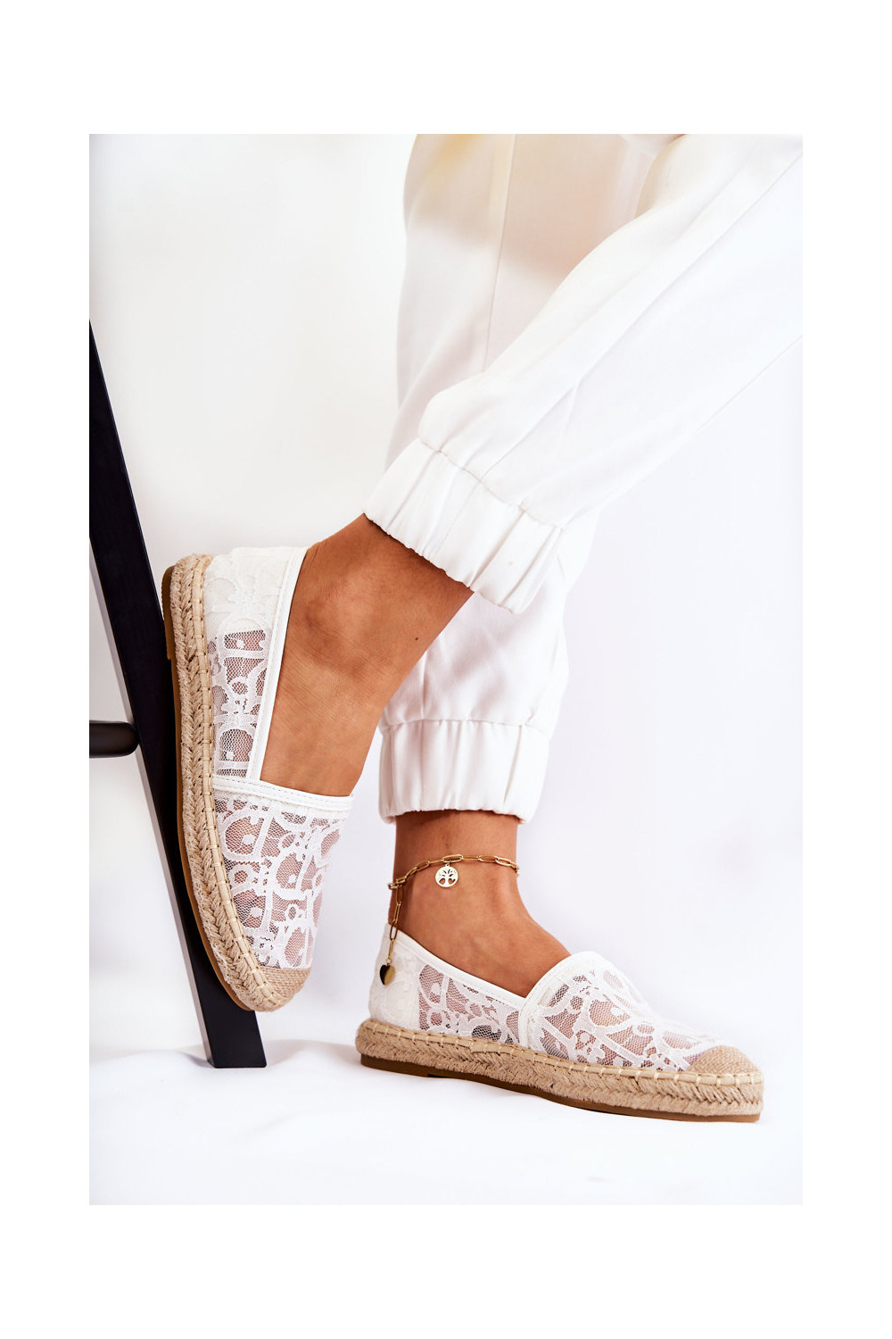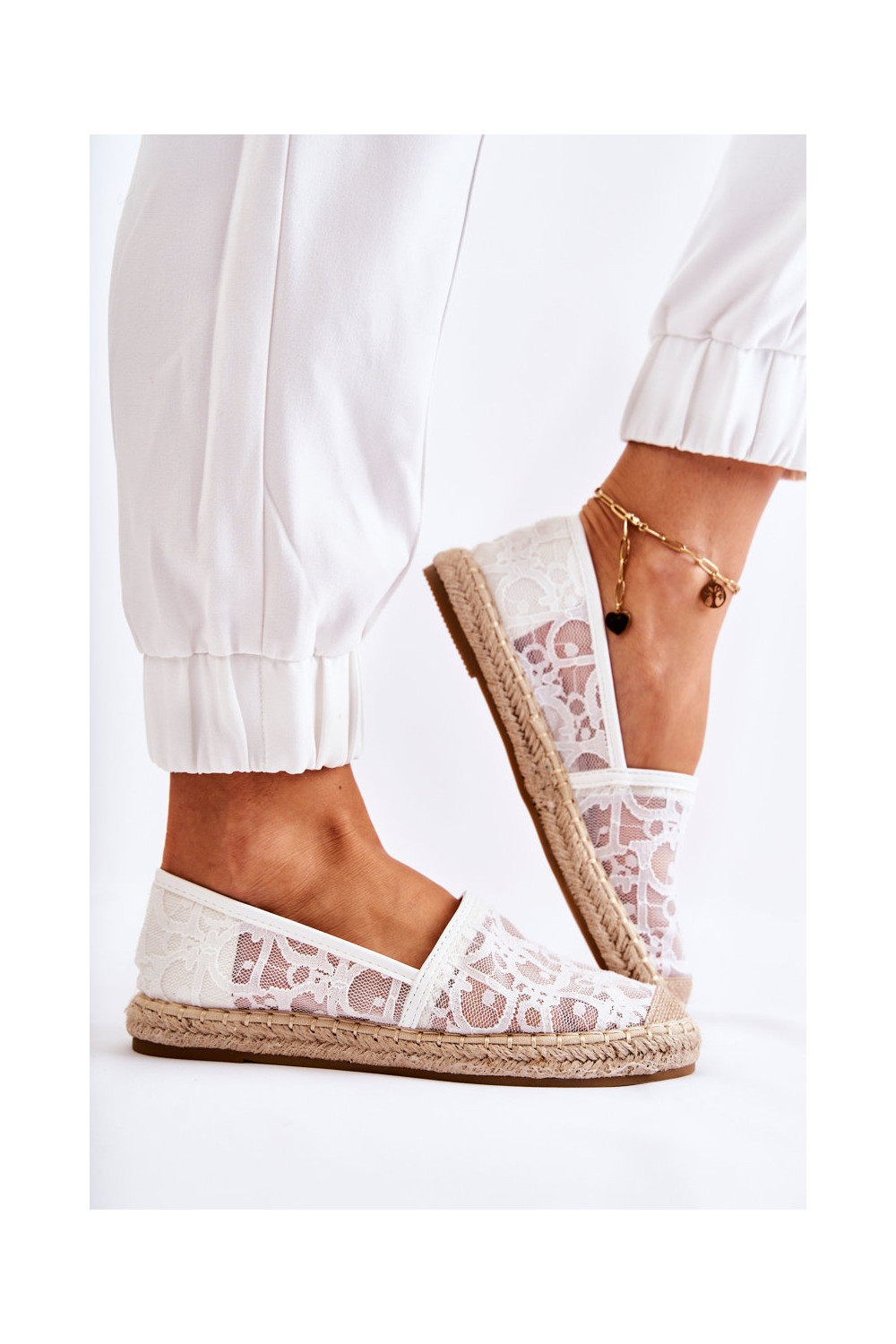 Klasiska modeļa Sieviešu espadrilles Ažūrs baltas krāsas Catris