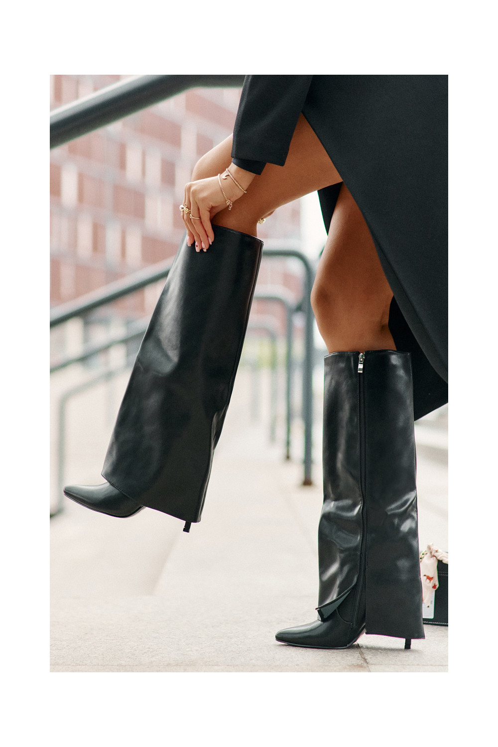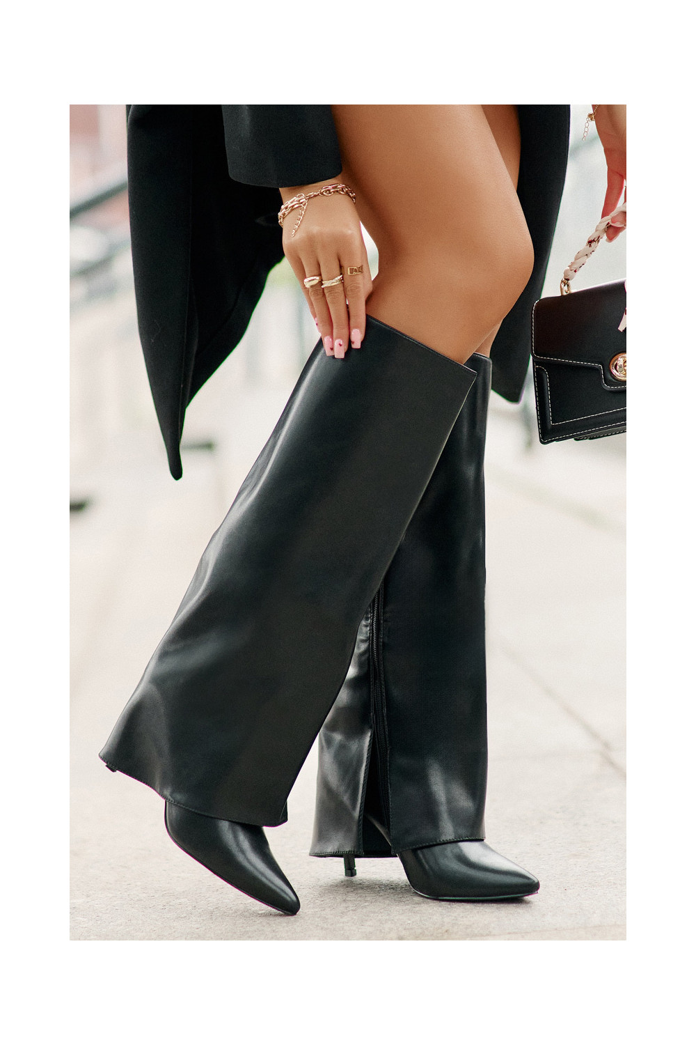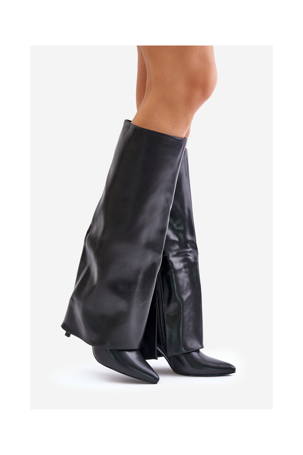 Siltināti garie zābaki ar plāniem papēžiem un iegriezumu melnā krāsā Tamonia