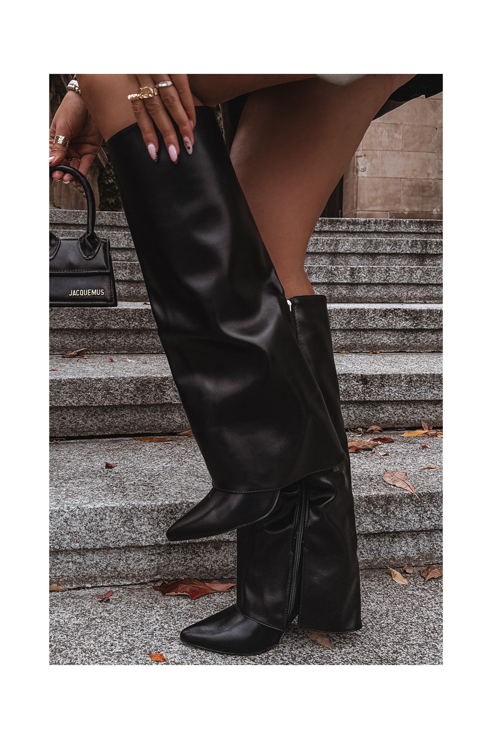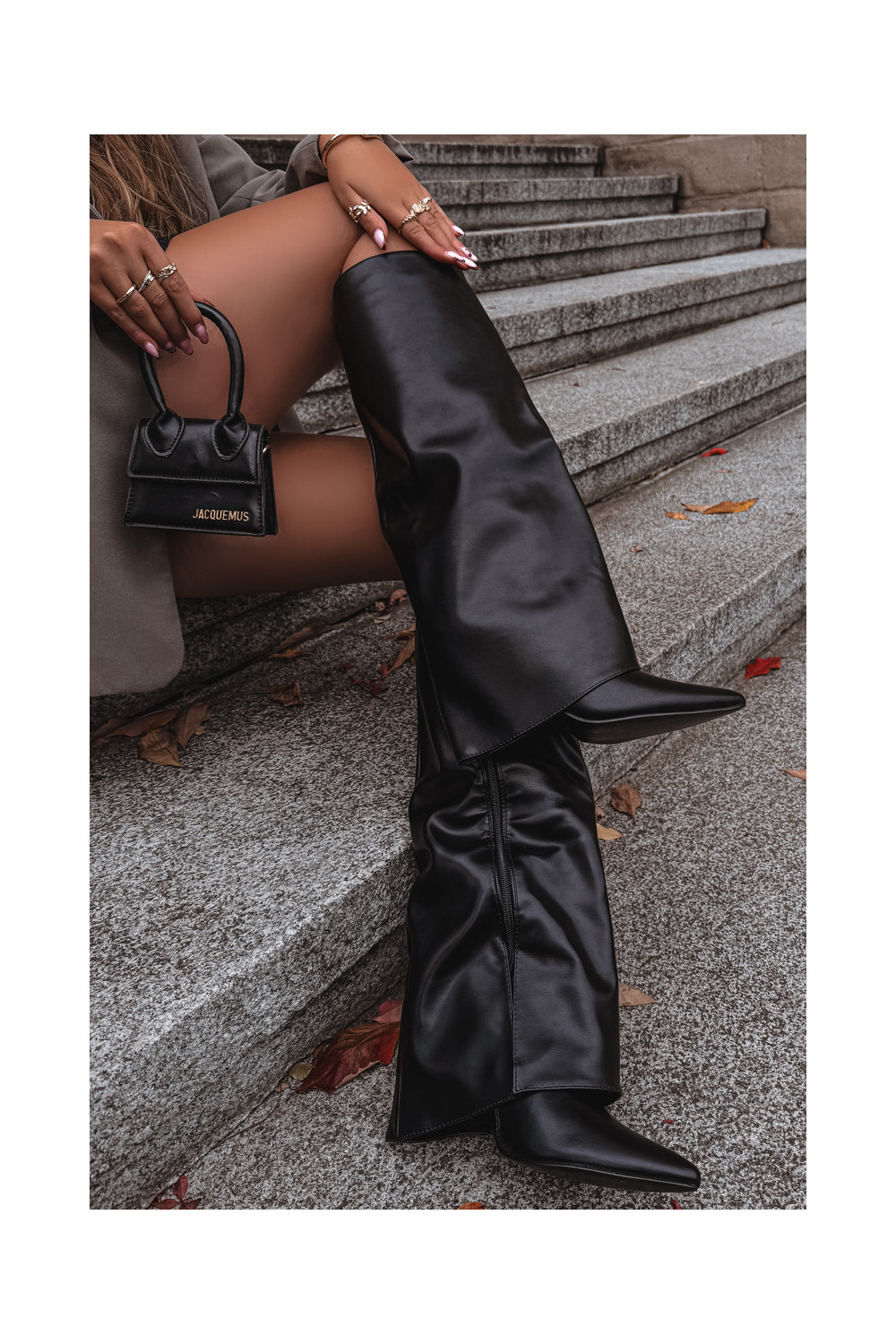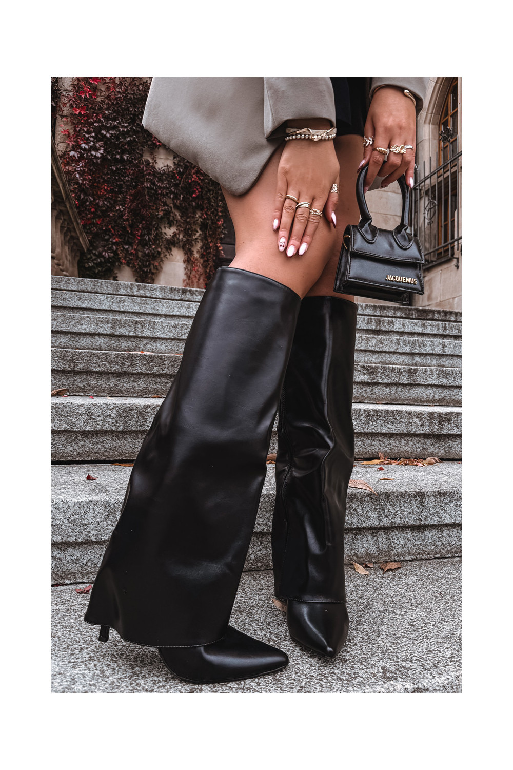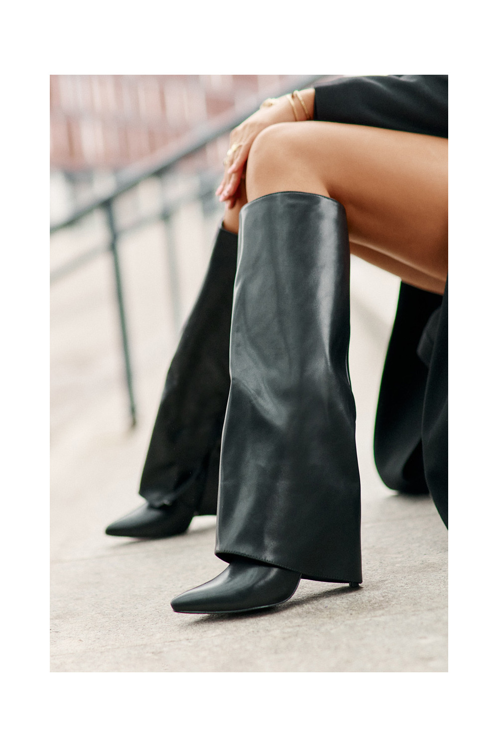Siltināti garie zābaki ar plāniem papēžiem un iegriezumu melnā krāsā Tamonia