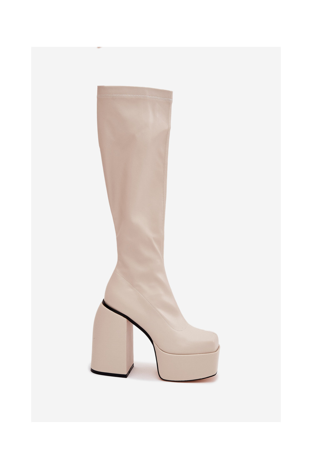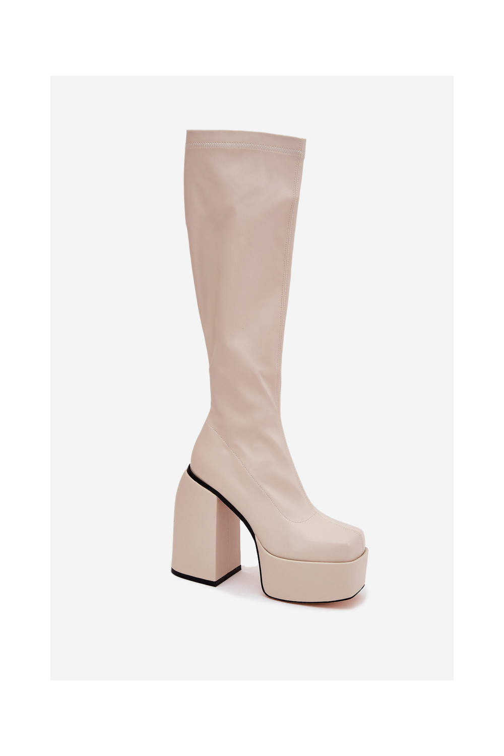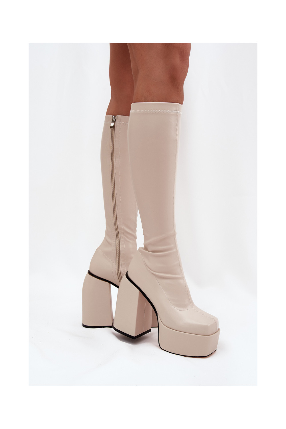 Sieviešu garie zābaki ar papēžiem un platformu ziloņkaula krāsā Yavira