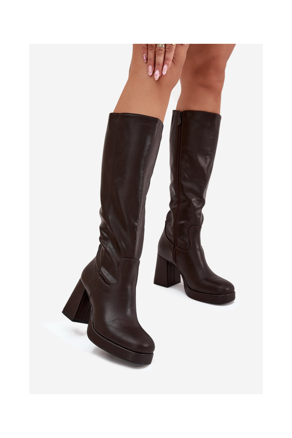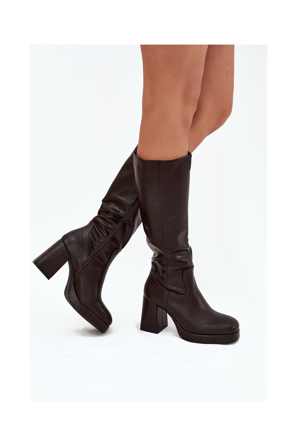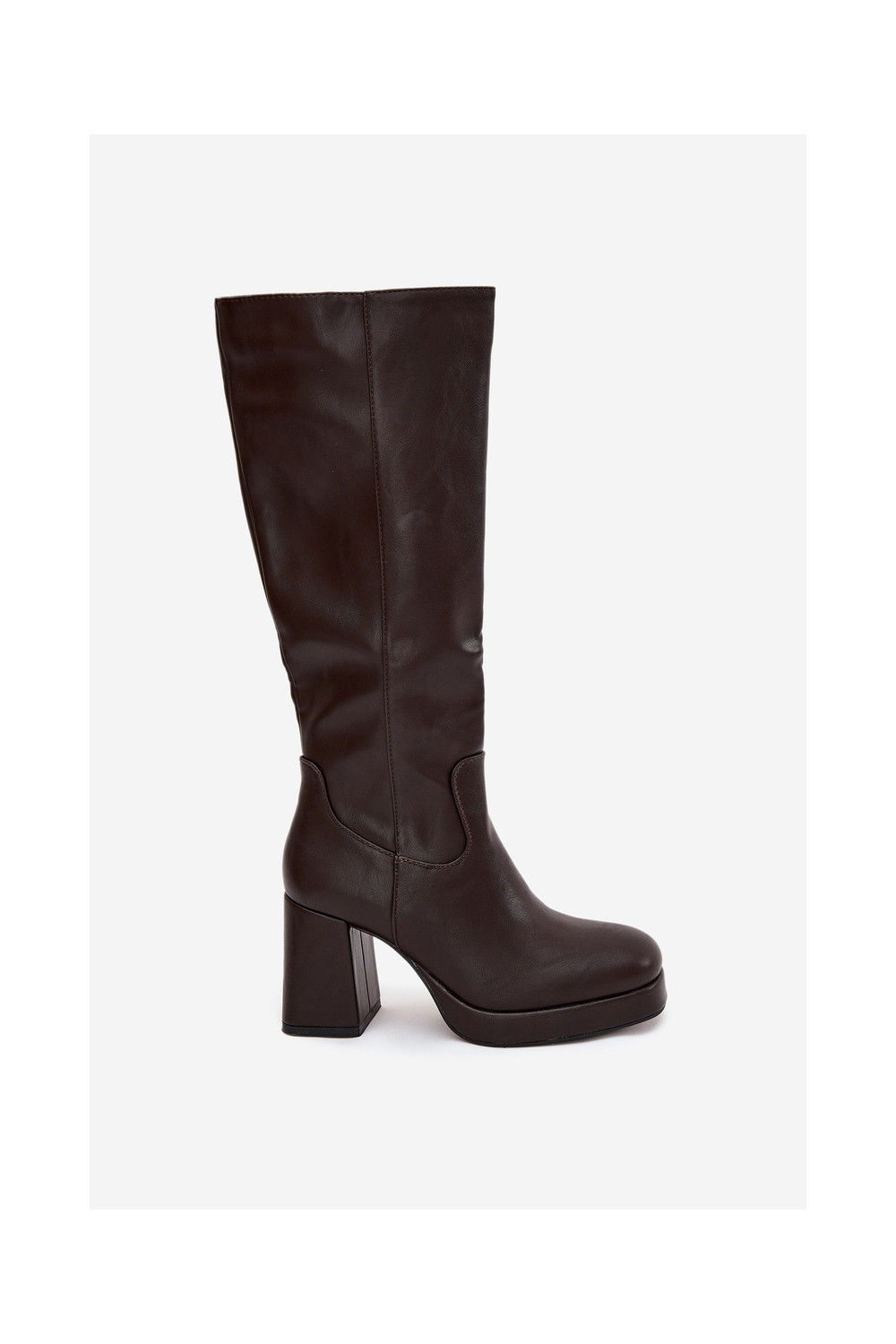 Sieviešu garie zābaki līdz ceļiem ar stulpeli, šokolādes krāsas „Selvia"